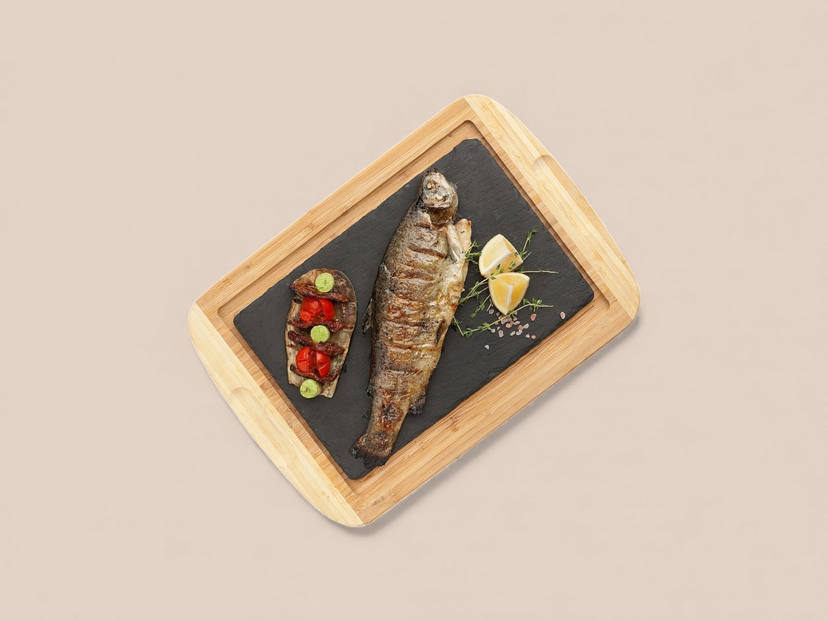 запечена риба тон, тогараши, сос трюфел с дехидратирани пресни гъби и дресинг юзу уасаби 135гр