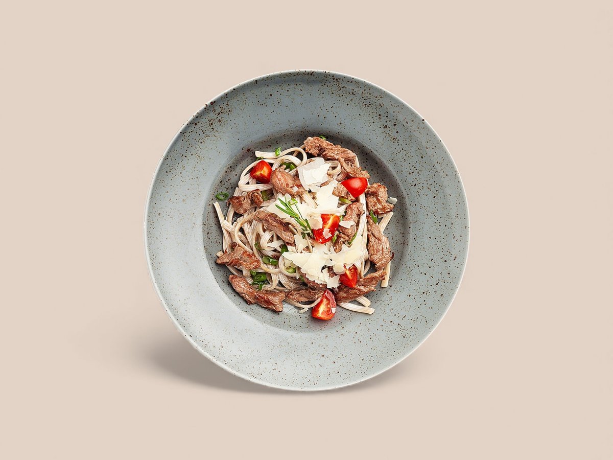 телешко бонфиле, картофено пюре, пепър сос, рукола, чери домати 350г