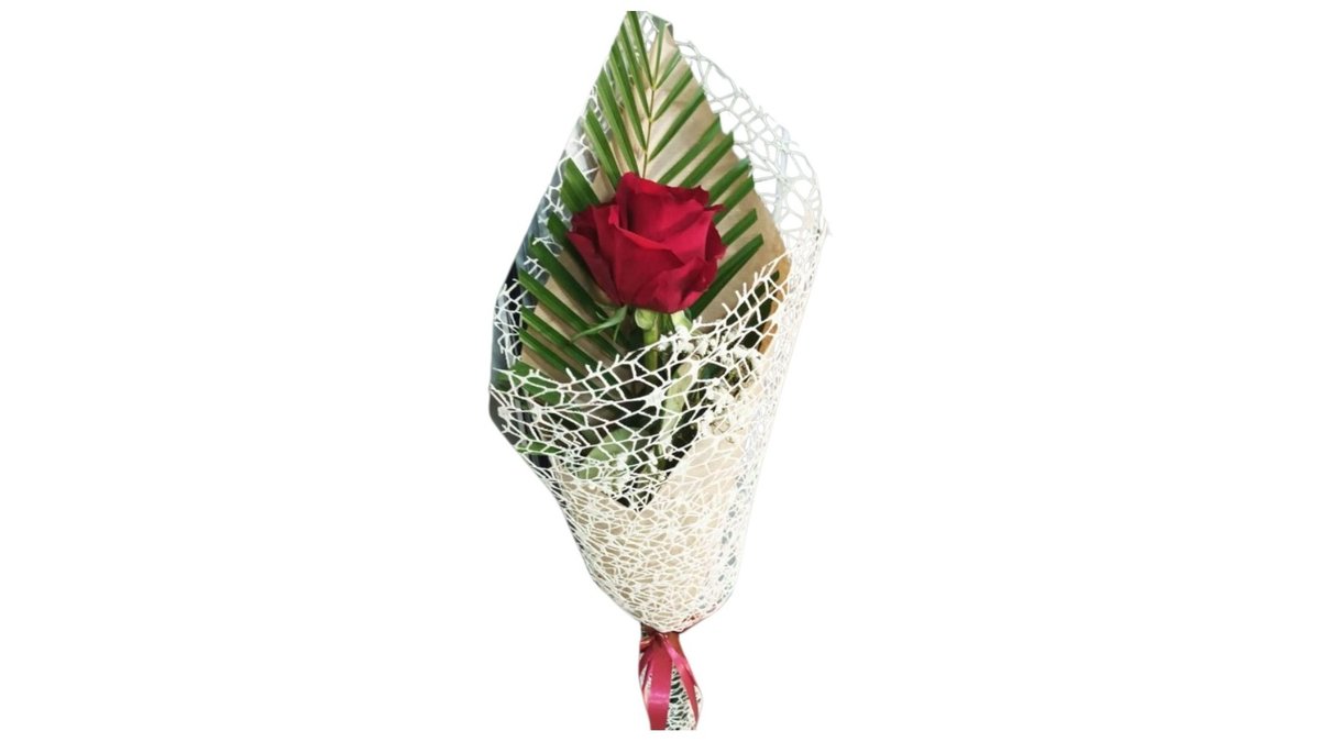 1 гербер, 2 хризантеми с богата зеленина и луксозна опаковка