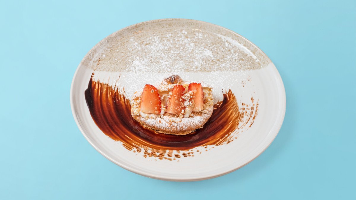 крем от тиквички, моцарела, босилек, мента, черен пипер, чипс от тиквички, люспи пармезан, лимонова кора 420г
