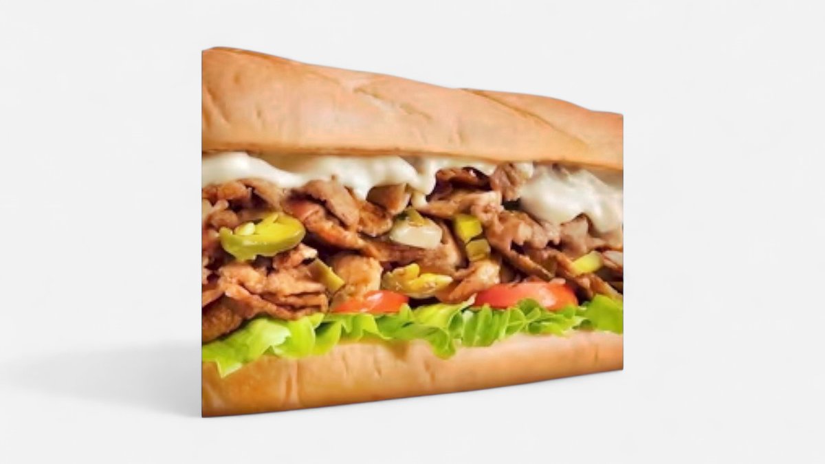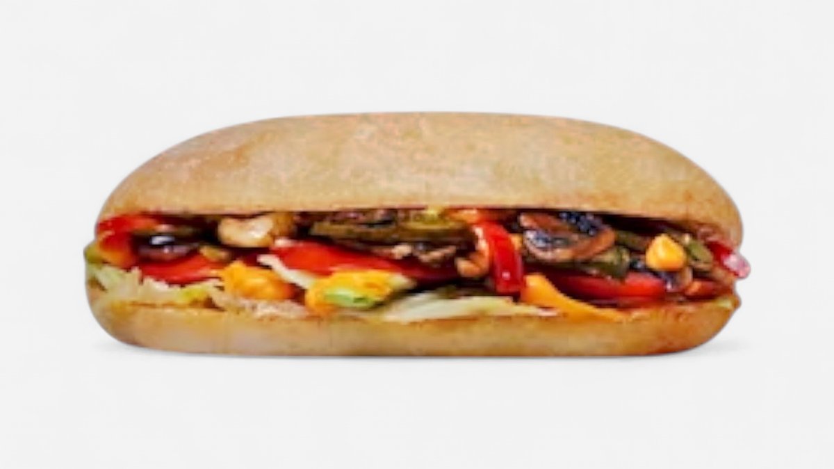Питка, айсберг, домат, гъби, лук, чушка, кисели краставички, разтопен чедър, green sauce