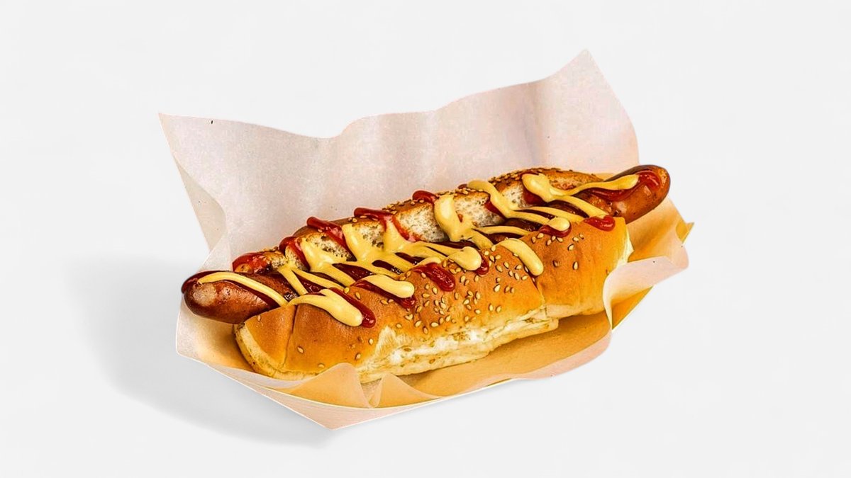 Бриош питка, кренвирш, кетчуп, майонеза, горчица