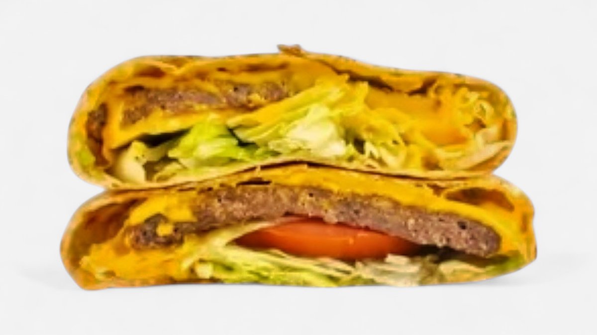 Питка, телешко месо, домат, кисели краставички, сотиран лук, айсберг, разтопен чедър, барбекю сос, americano sauce