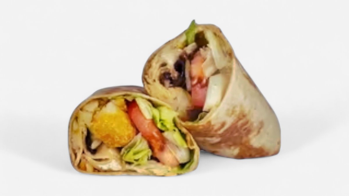 Тортила, 2бр. картофено кюфте, кис. краставички, домат, айсберг, карамелизиран лук, сос тартар