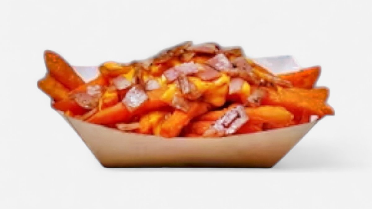 Бриош питка, кренвирш, хрупкав бекон, лук, чедър, BBQ сос