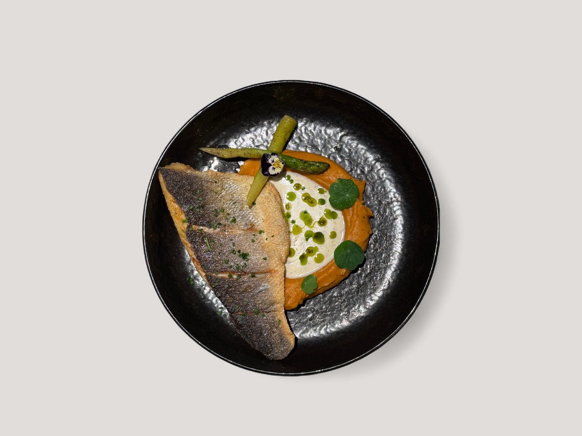 пюре от батат, аспержи, провансалски сметанен сос, шалот 350г