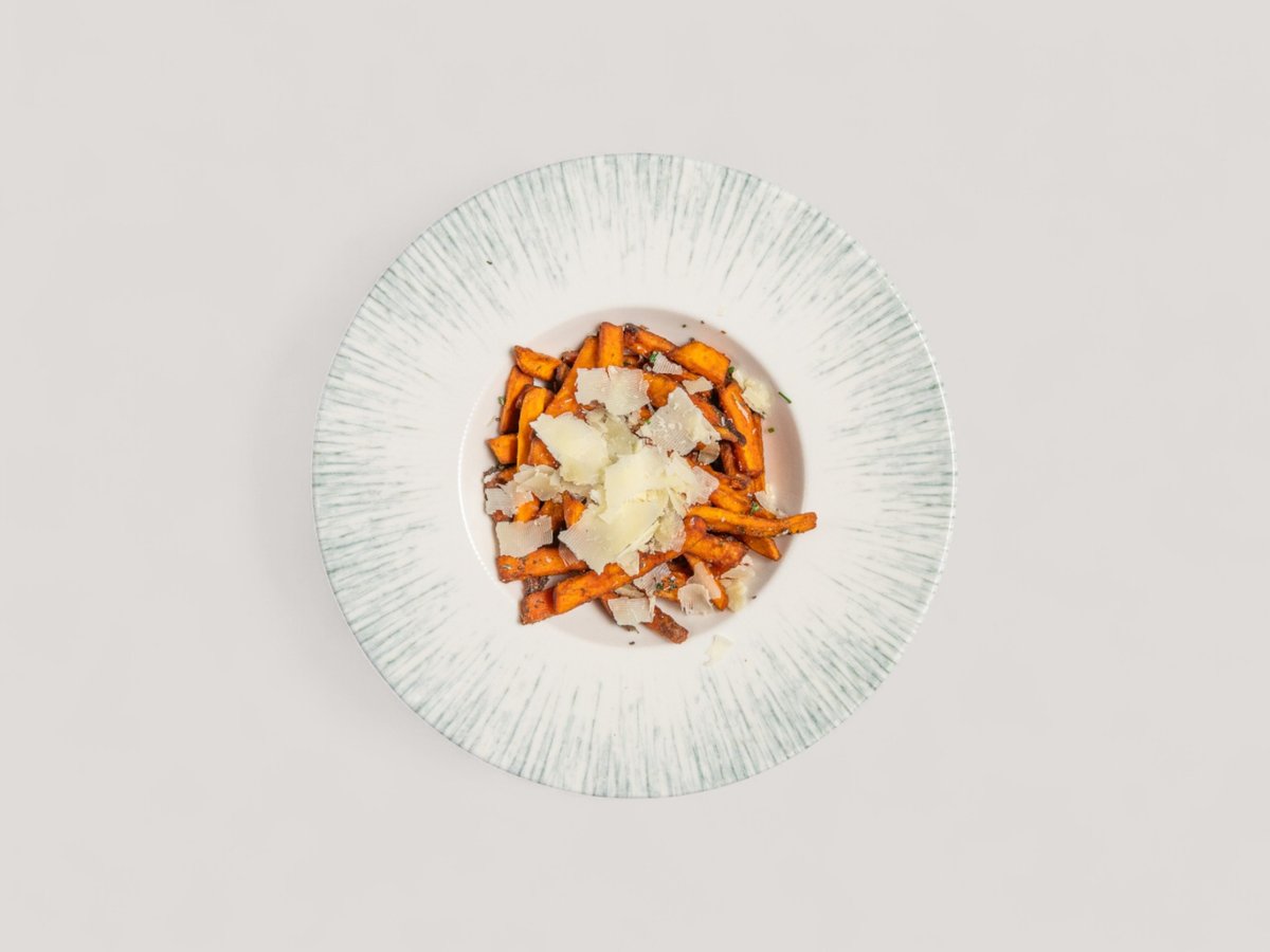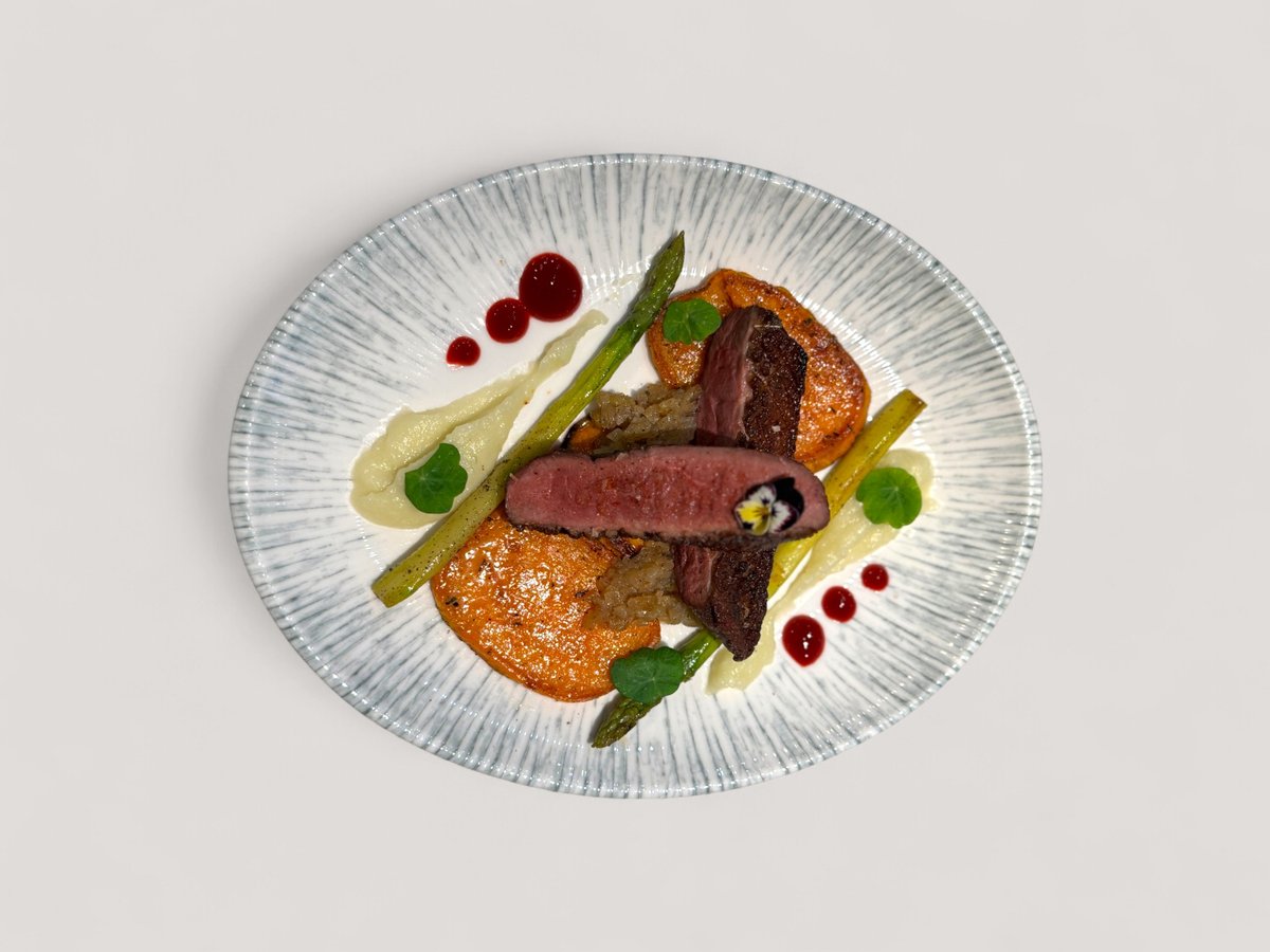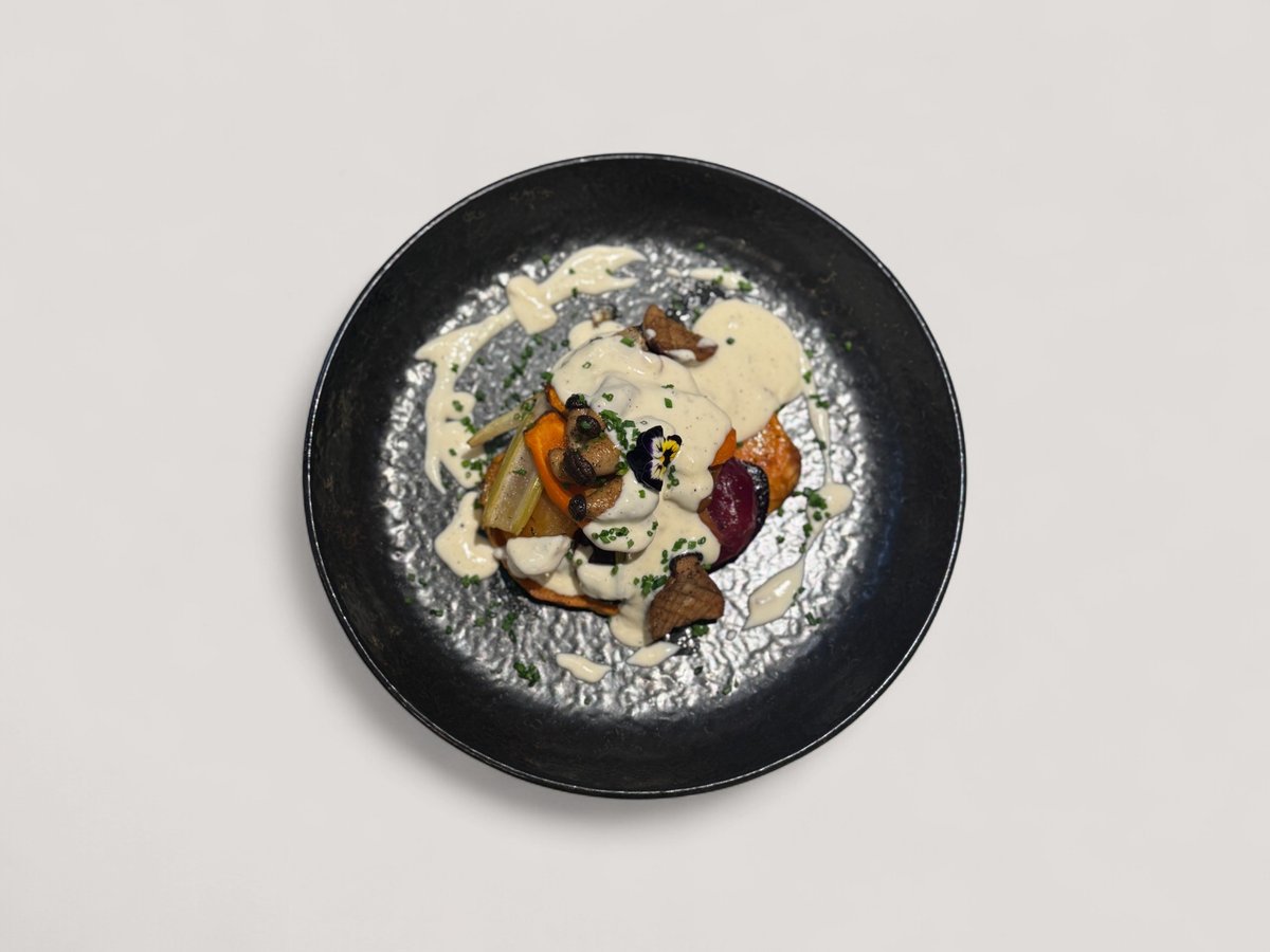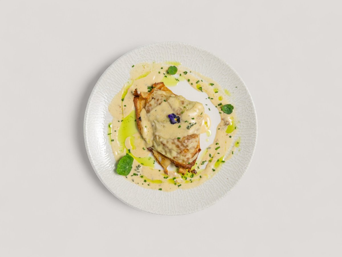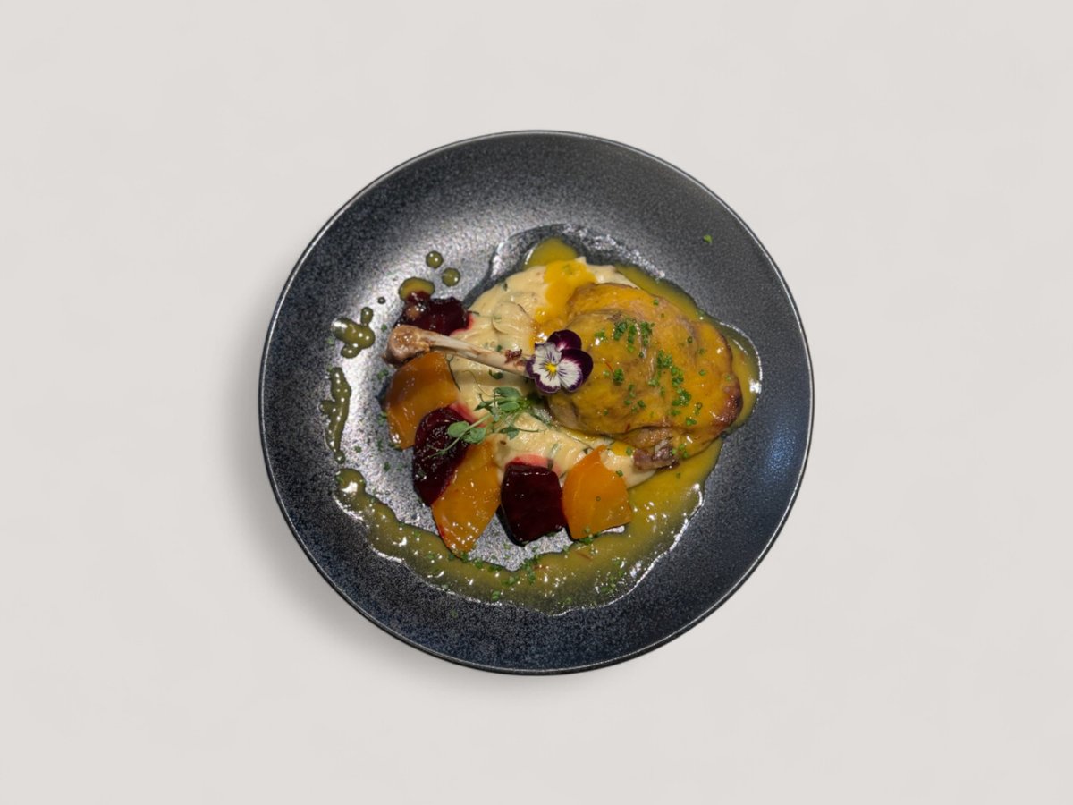 картофено пюре с манатарки и босилек, карамелизирано цвекло и сос велуте с шафран 360г