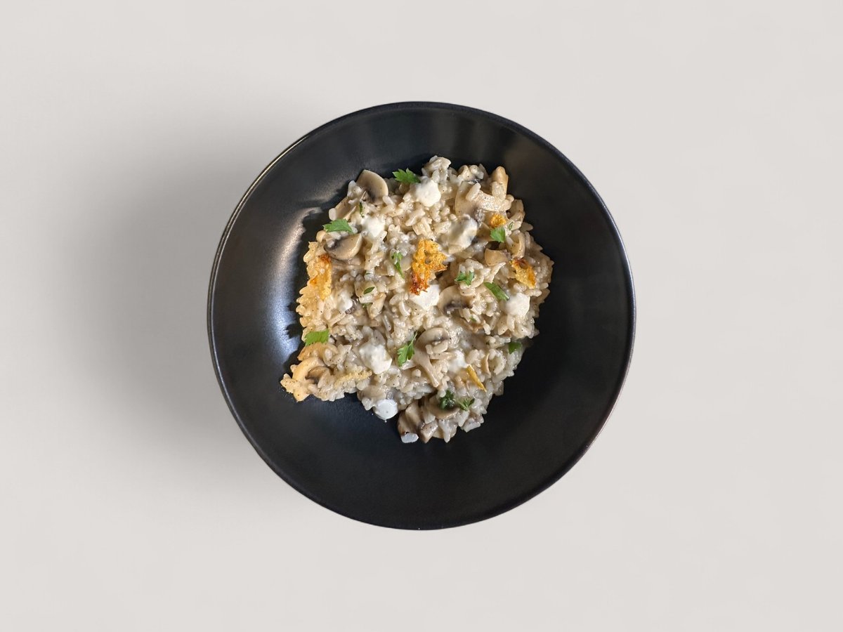 печурки, манатарки, кладница, трюфел, шимеджи, крем фреш с печен чесън и лимон, шалот, пармезан 350г