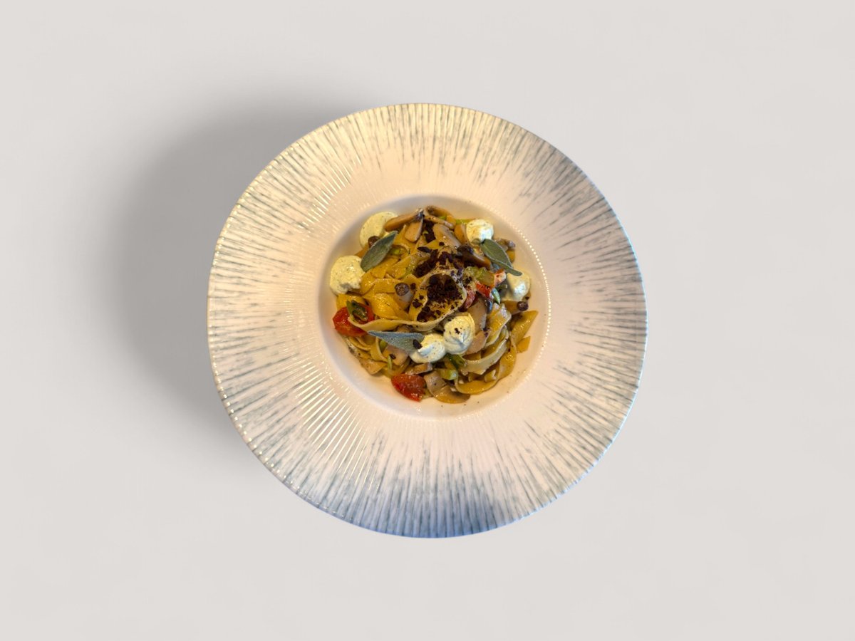 прясна паста, тиквички, печурки, кладница, чери и билков мус 300г