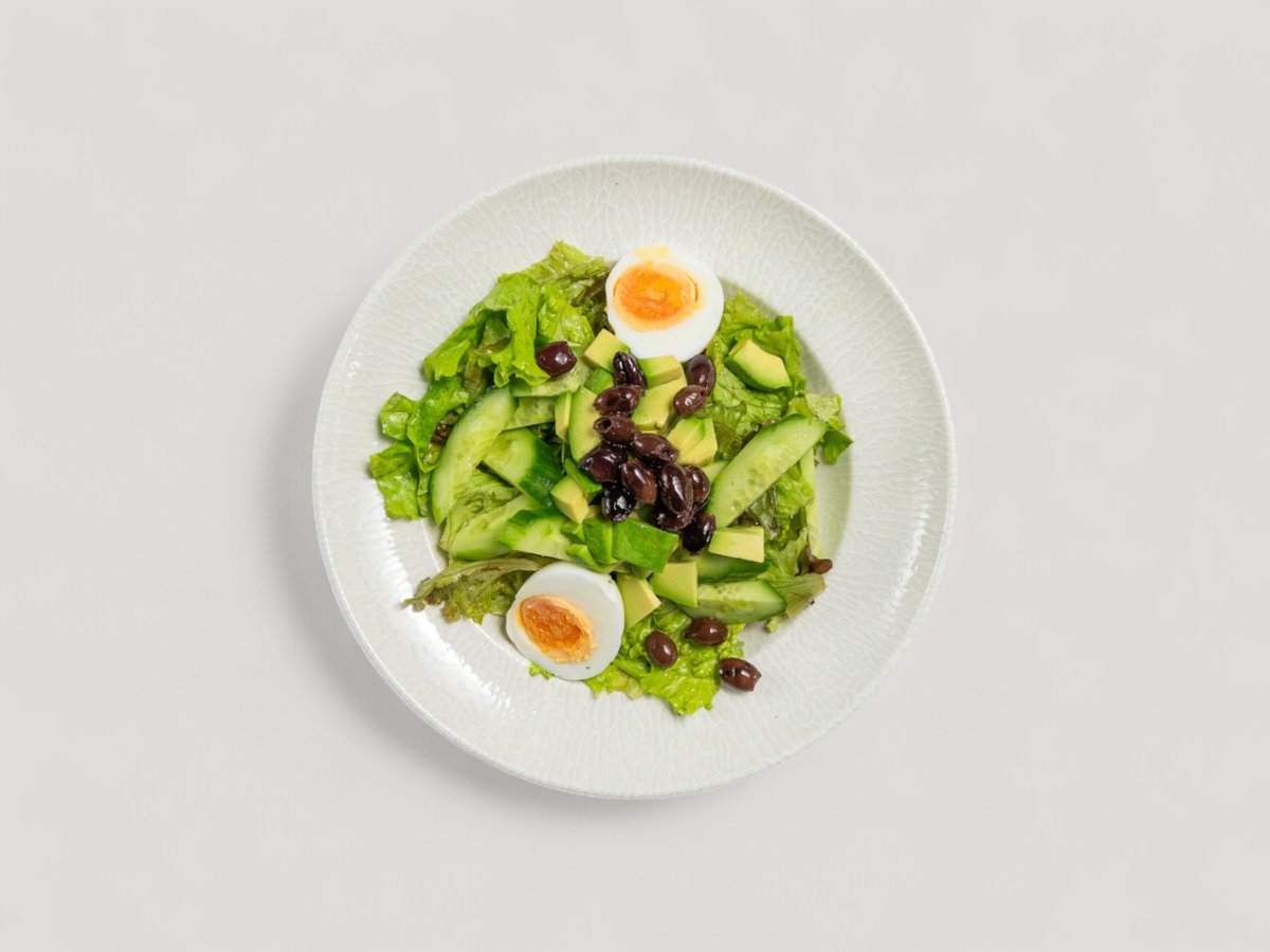Микс зелени салати с яйце и авокадо