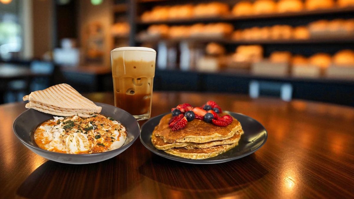 2бр, яйца на очи, тост хляб с 4 вида семена, сирене Котидж, авокадо, домати, краставици, черен сусам, балсамико