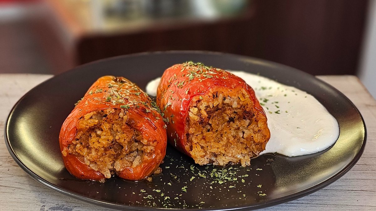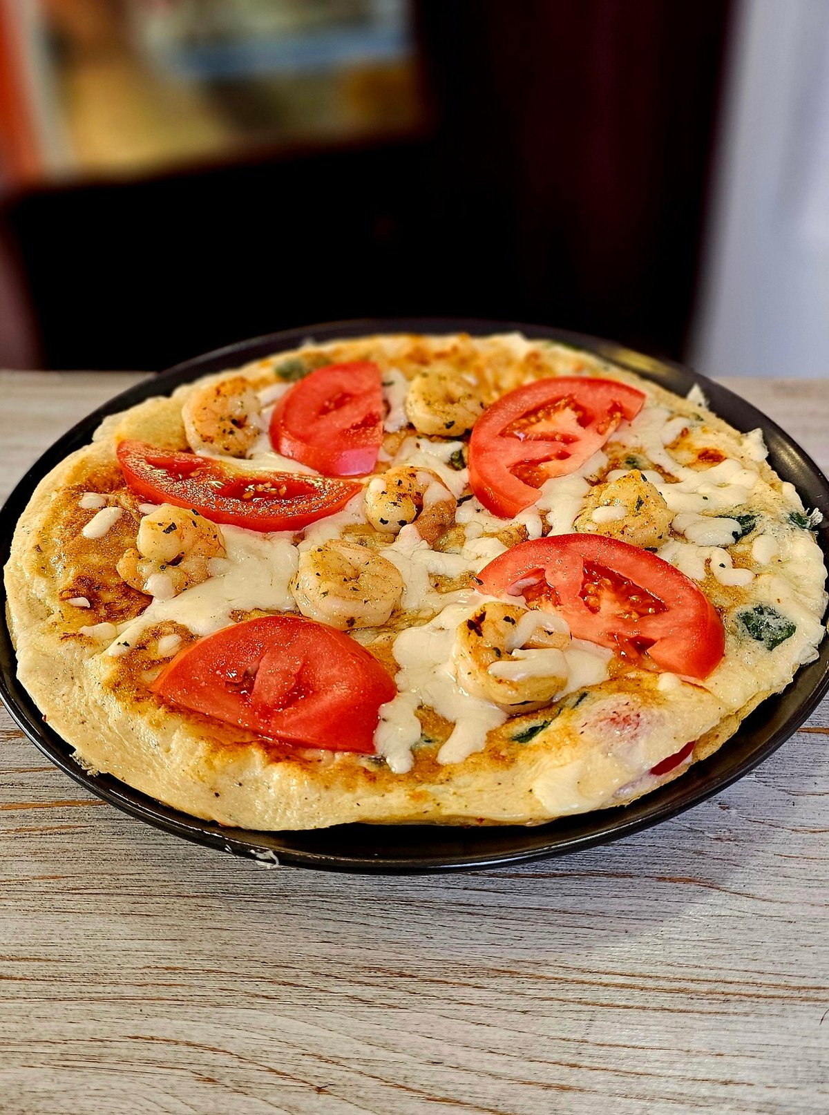 5 бр. палачинки, кайма, ориз, боб, нахут, моцарела, яйце, крема сирене, кисели краставици