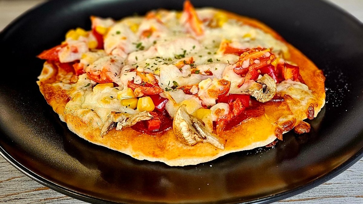 Тортила по избор, пилешко филе, кисели краставички, царевица, моцарела, чушки, сметана