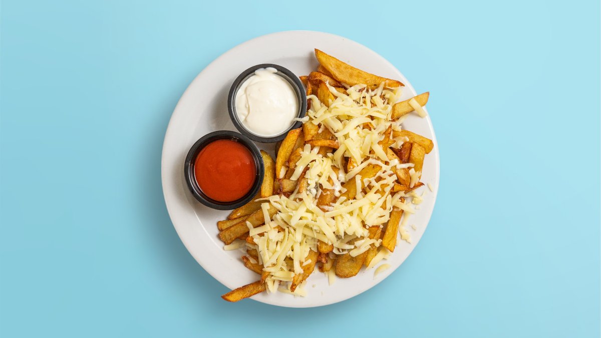 Домашни пържени картофи, кашкавал, чеснов сос, пикантен сос 350гр