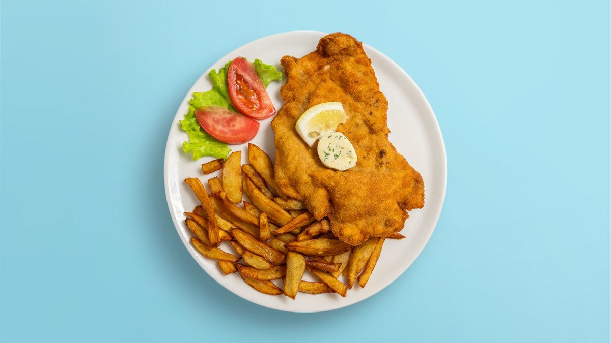 Свинско бонфиле, пържени картофи, масло, копър 350гр