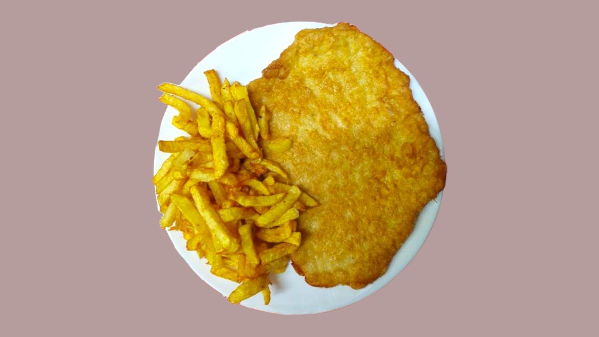 Шницел по Виенски свинско бон филе и пържени картофки 150г