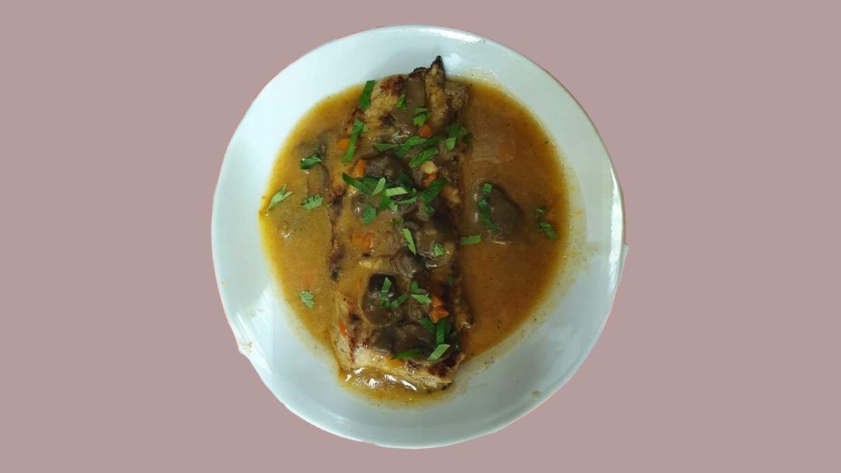 Пилешка пържола от бут с гъбен сос