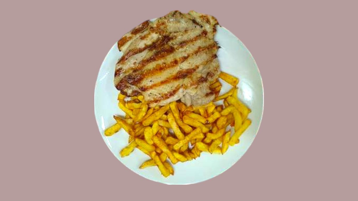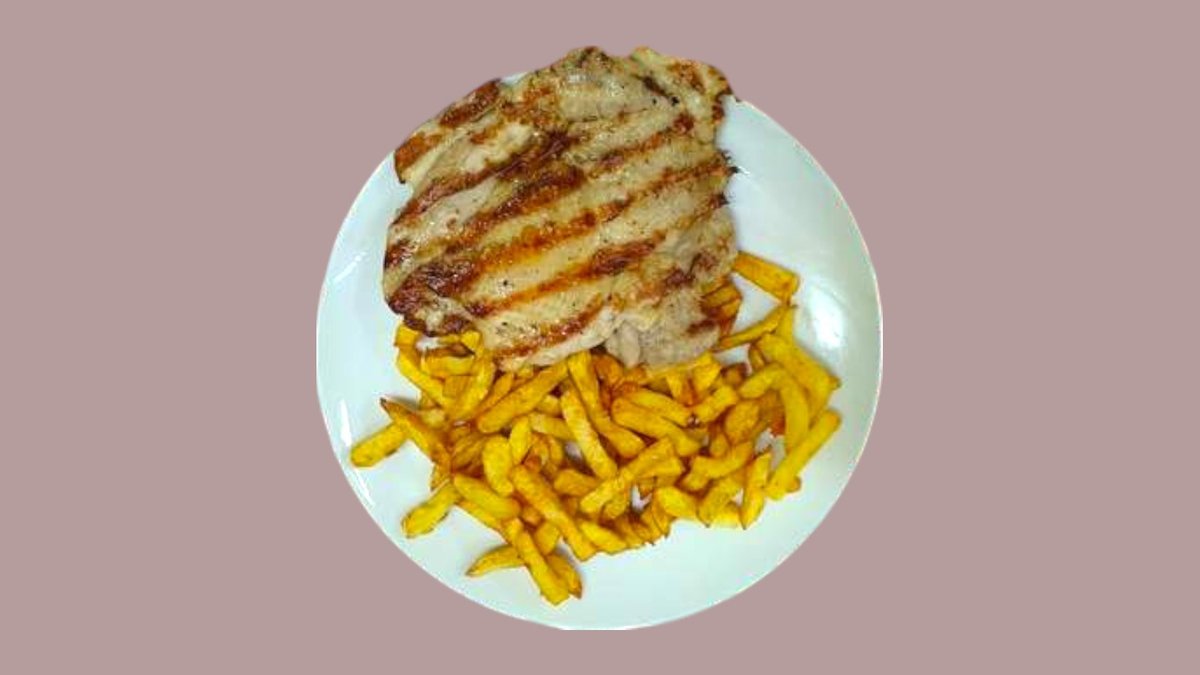 свинско бон филе, галета, яйце и масалце и домашни пържени картофи 150г