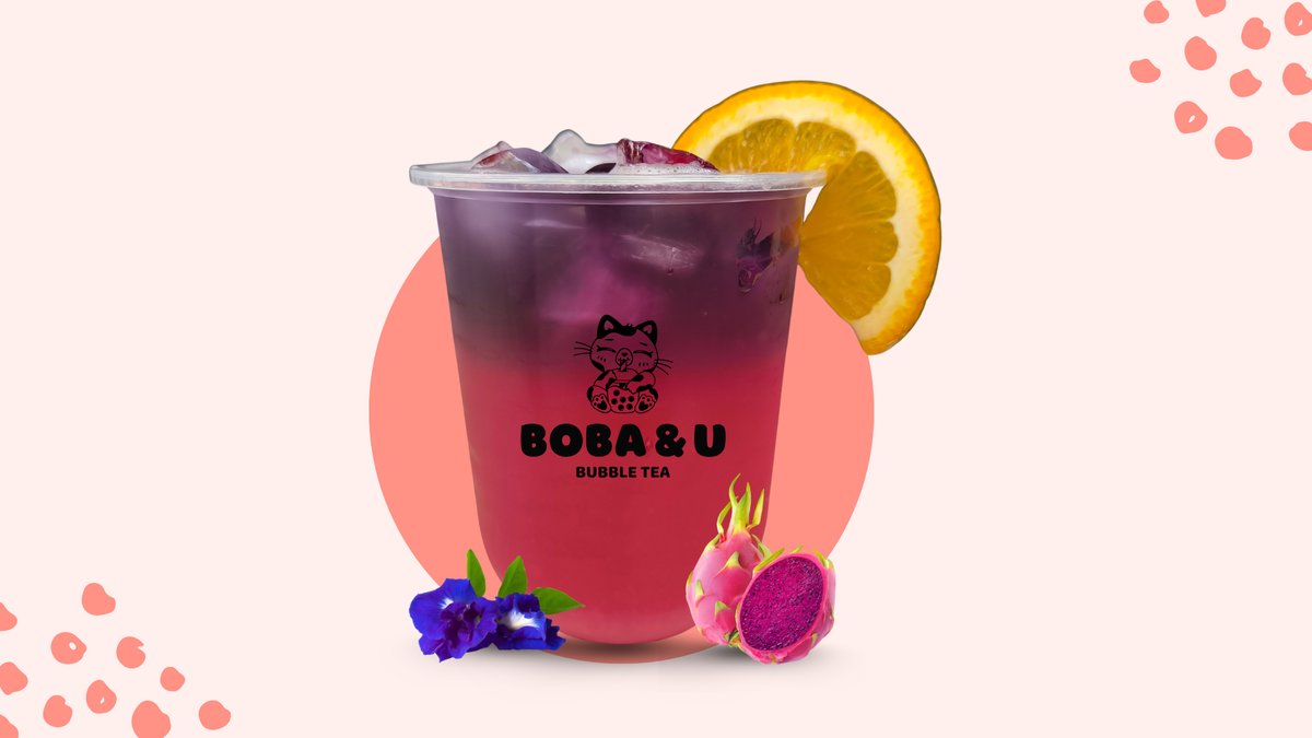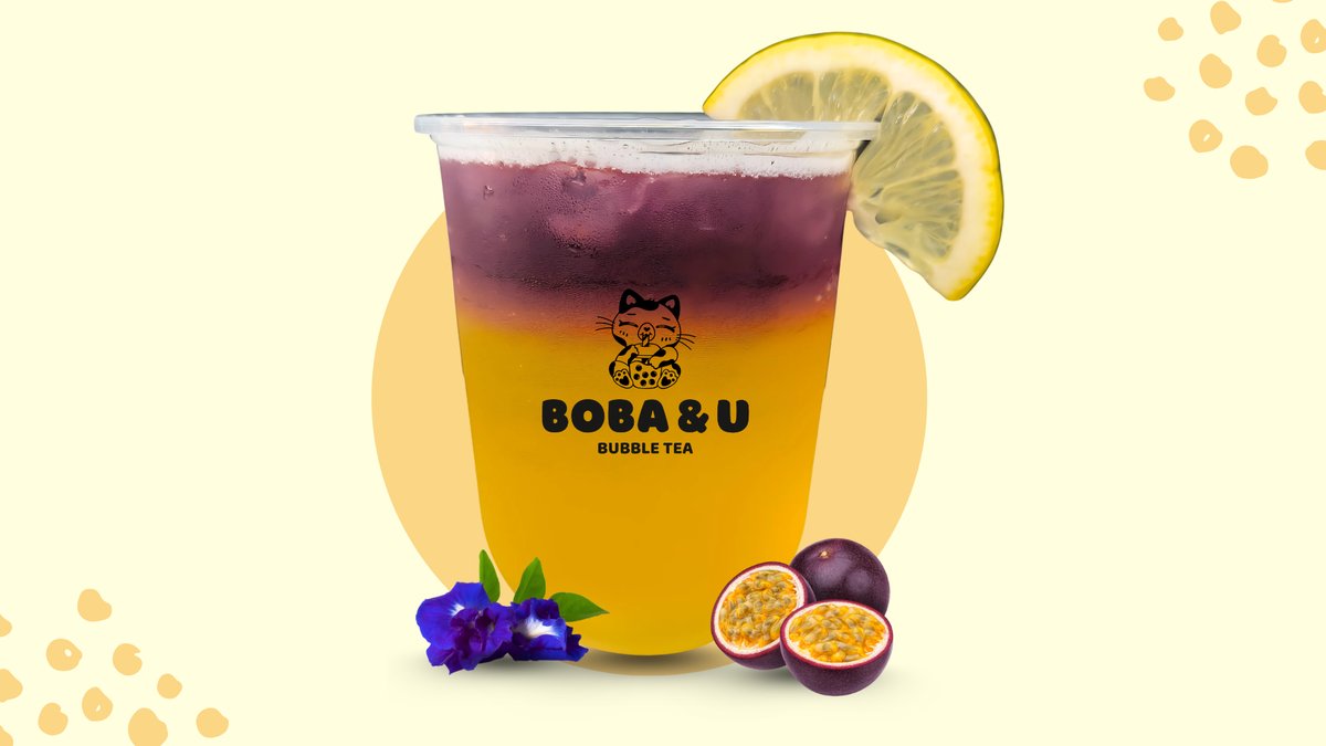 Визуално очарователна напитка, която променя цвета си с добавяне на цитрус. Напитката представлява лимонада с тропически вкус на маракуя и с пеперуден чай (butterfly pea tea), който придава естествено красиви цветове.