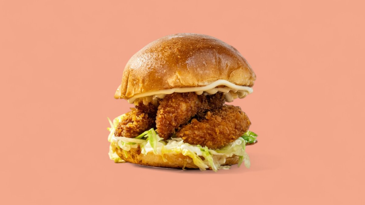 300г - прясно изпечена Бриош питка, хрупкави пилешки бон филета по японска рецепта с Терияки и панировка, айсберг и майонеза