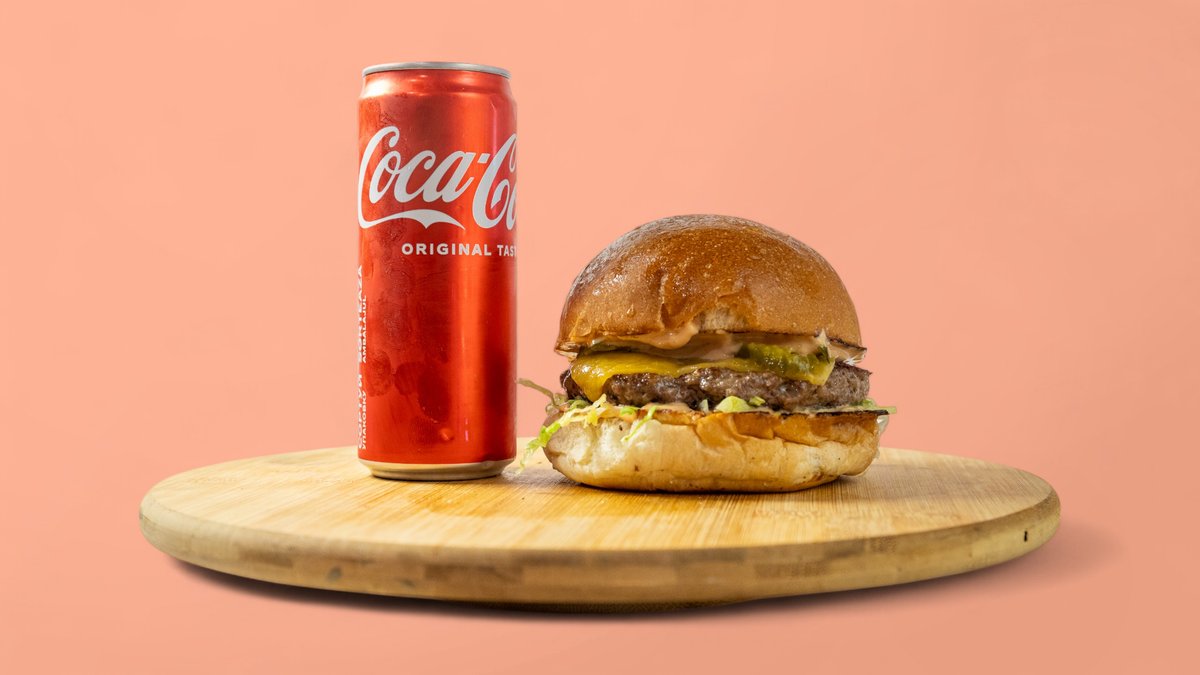 500г - прясно изпечена Бриош питка, две 100% телешки кюфтета овкусени само със сол, разтопен Американски чедър, айсберг, домашно мариновани кисели краставички, домат и Braunch сос