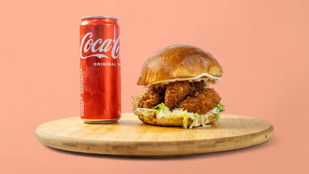 300г - прясно изпечена Бриош питка, хрупкави пилешки бон филета по японска рецепта с Терияки и панировка, айсберг и майонеза
