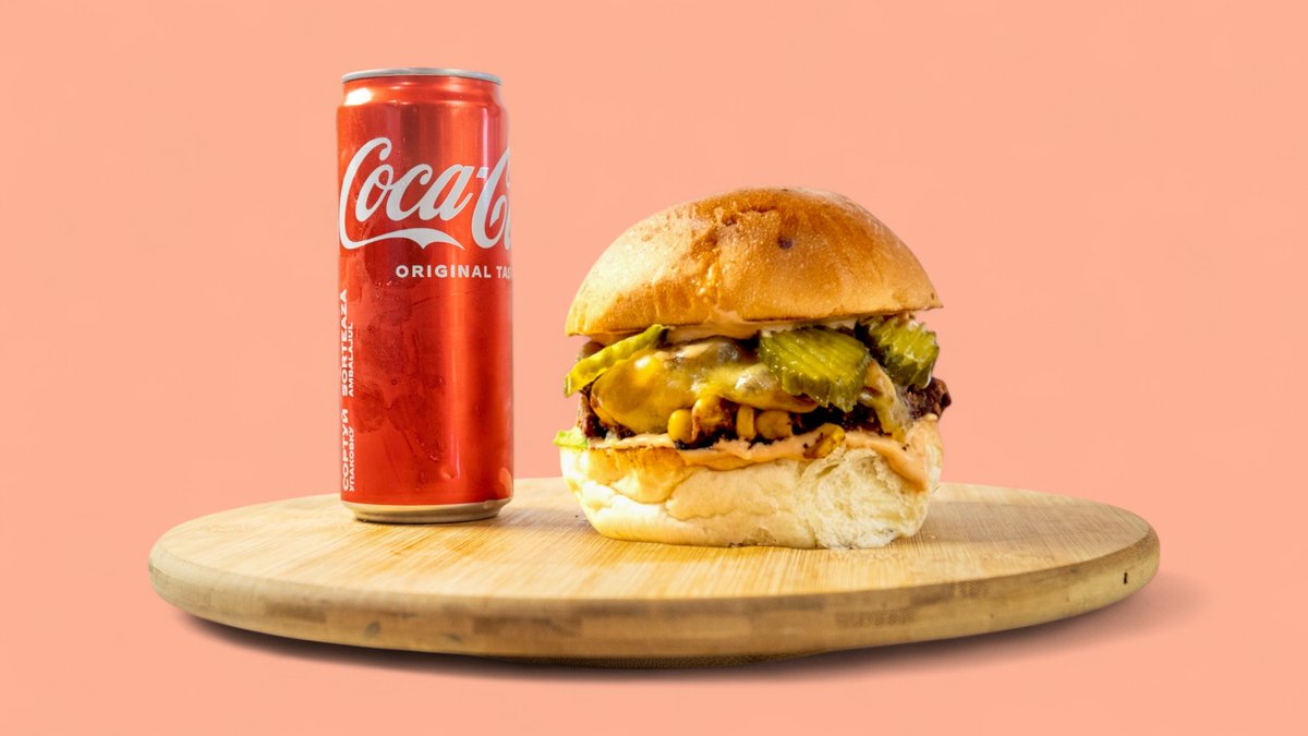 330г - прясно изпечена Бриош питка, бобени кюфтета от перуански боб и царевица овкусен с корейска подправка, разтопен чедър, айсберг, домашно мариновани кисели краставички и brunch сос