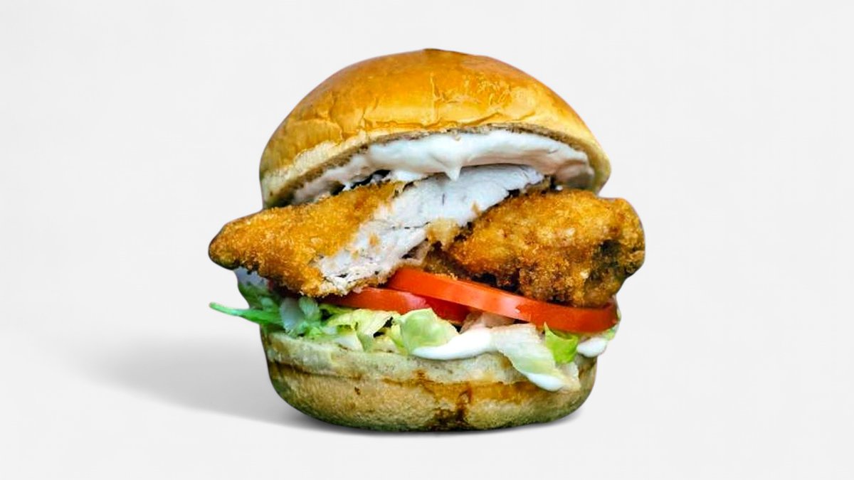 бриош хлебче, хрупкави пилешки филенца, айсберг, домат, айоли сос 330г
