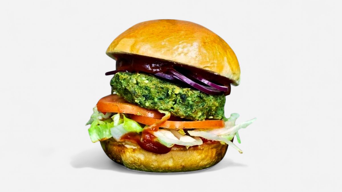 бриош хлебче, 120г веган бургер, водорасли, конопено семе, лимец, слънчогледово семе, кокосово масло, айсберг, домат, лук, кисели краставички, сос кетчуп Heinz 310г