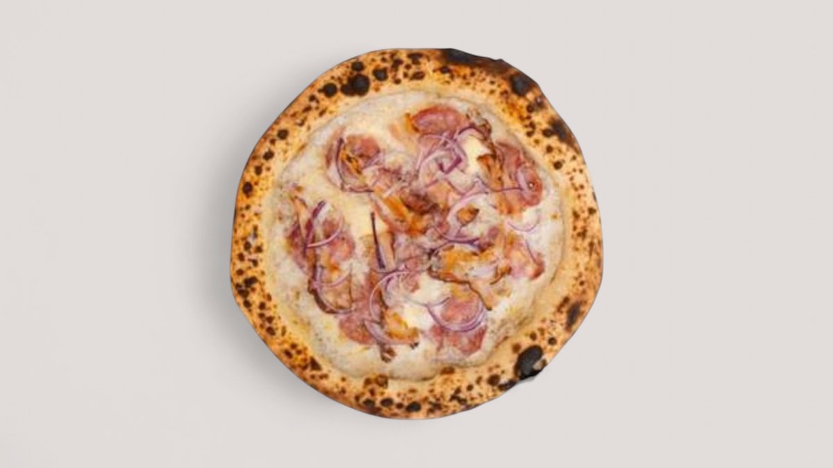 автентично неаполитанско тесто с бавна ферментация и брашно CAPUTO,сос Карузо, панчета, с.наполи,лук, пармезан