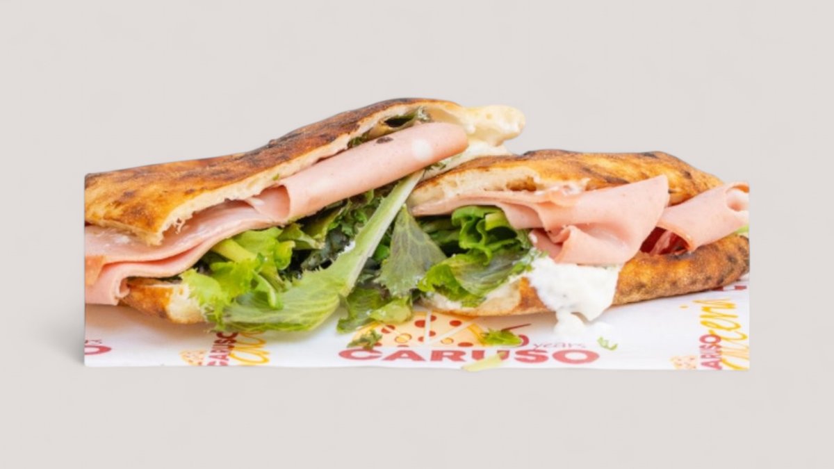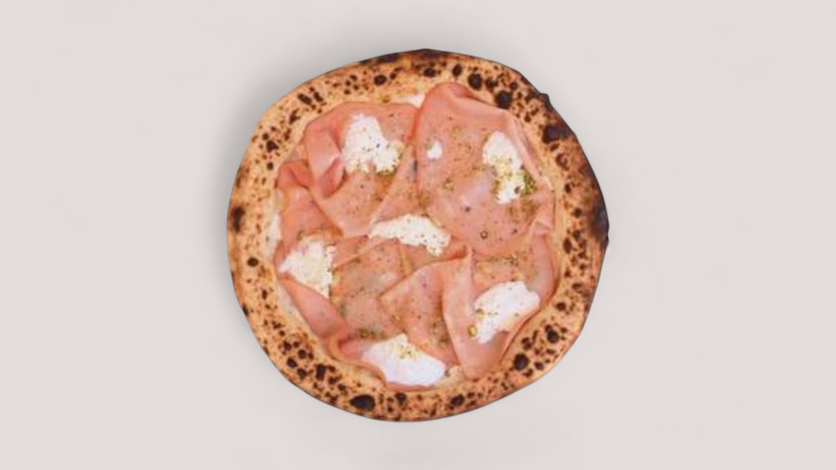 автентично неаполитанско тесто с бавна ферментация и брашно CAPUTO бяла основа, страчатела ,мортадела и натрошено пистачио