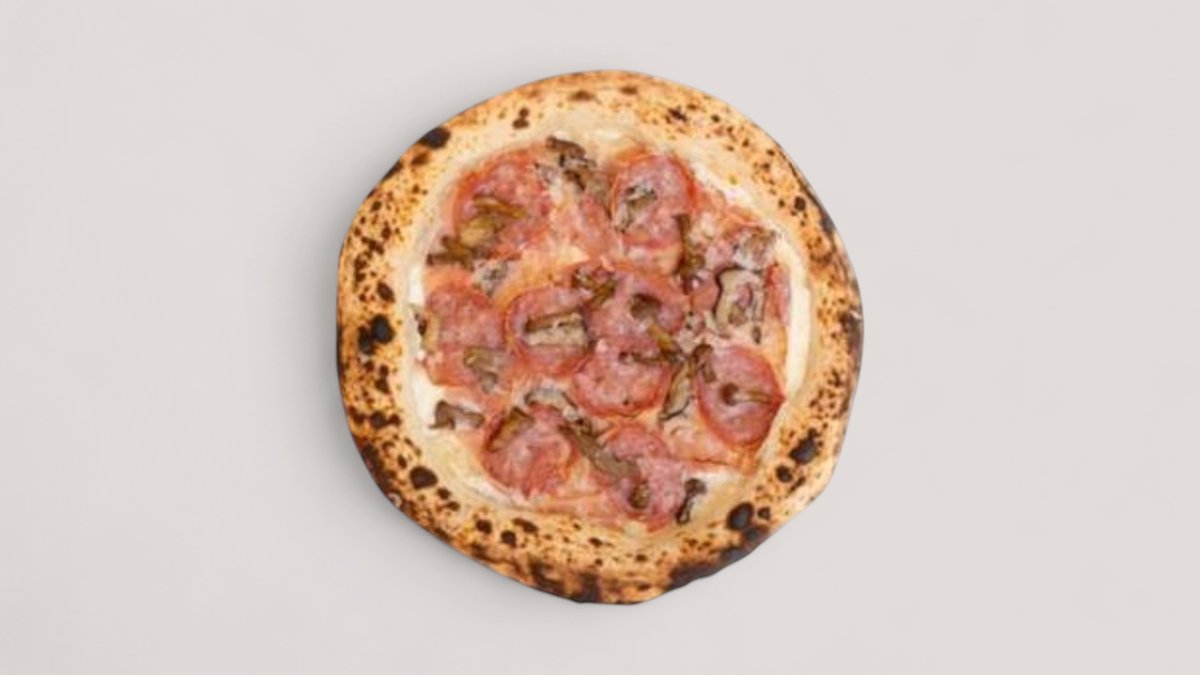 автентично неаполитанско тесто с бавна ферментация и брашно CAPUTO,бяла основа,моцарела,Кото,Наполи, горски гъби, пармезан