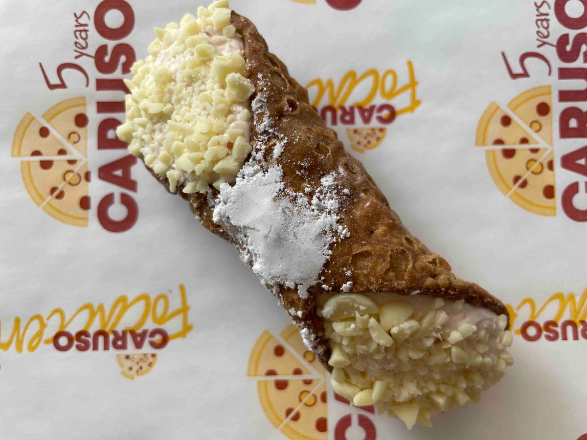 канол с , маскарпоне, крема сирене, сладко от ягоди и бял шоколад