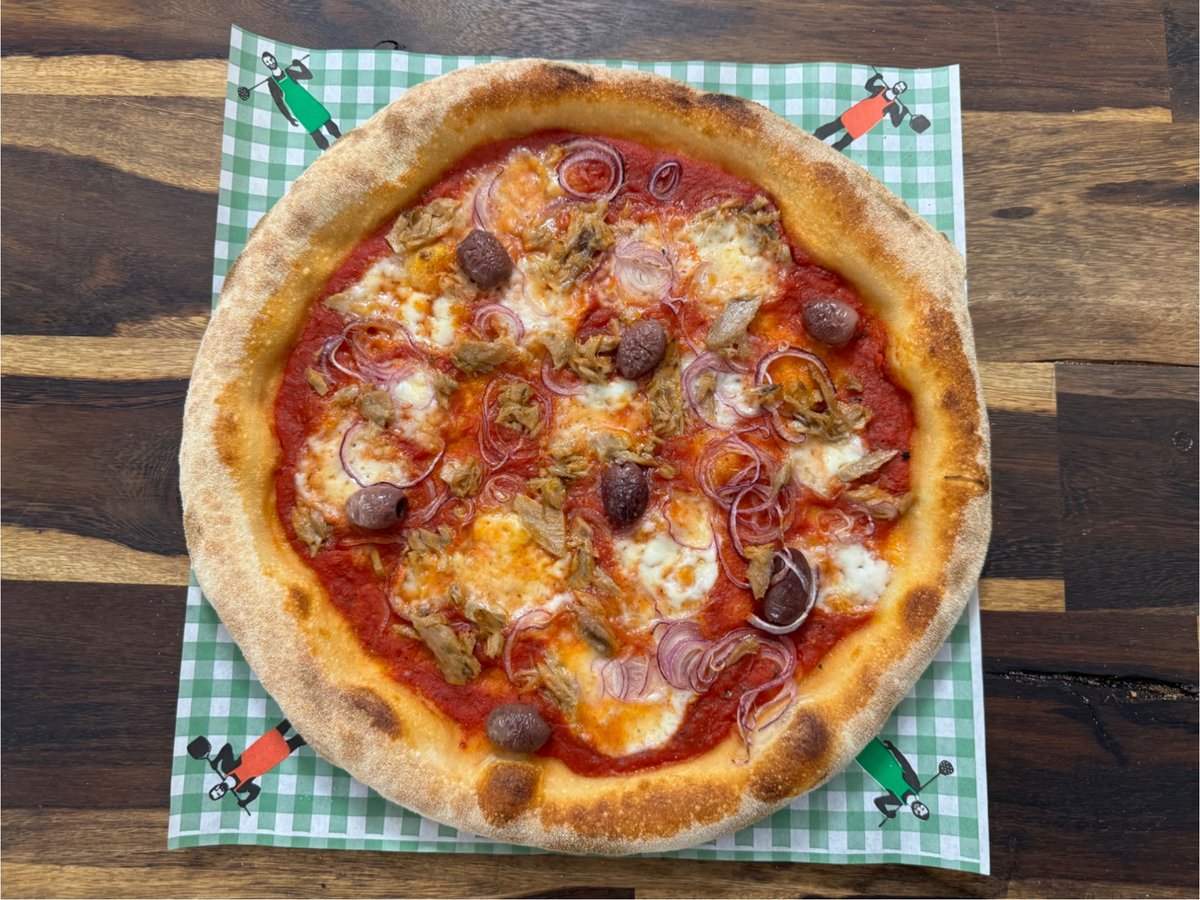 доматен сос, биволска моцарела, филе от риба тон, лук, маслини 350-450г