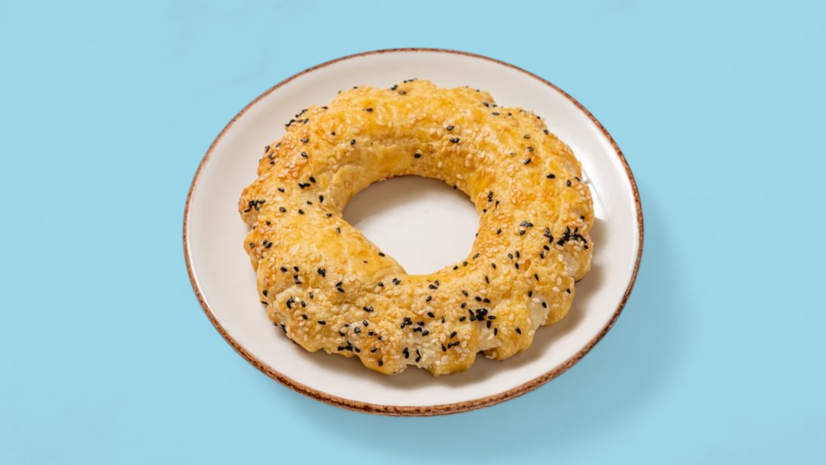 Солен геврек със сусам, пълен с Филаделфия и пуешко филе