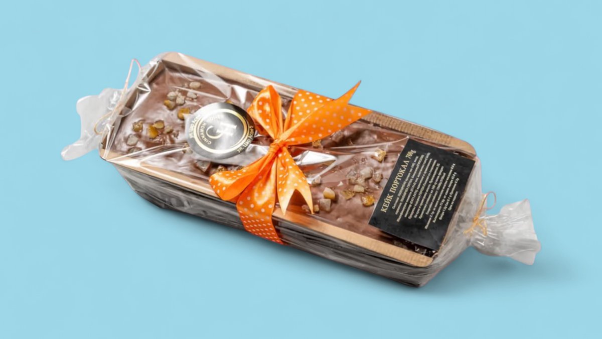 Кекс с портокалов аромат, залят с шоколад и захаросани портокалови корички. 700гр
