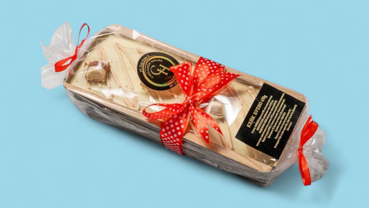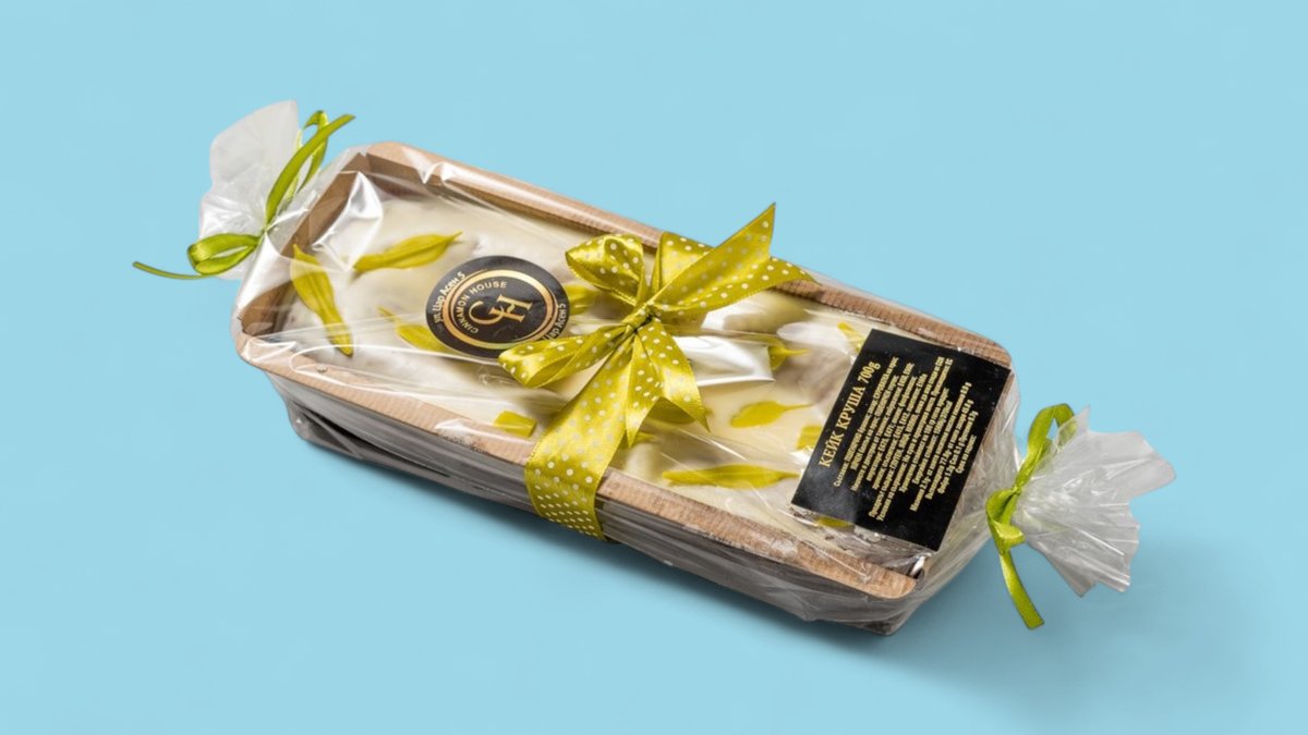 Кекс с аромат на круша, залят с бял шоколад 700гр