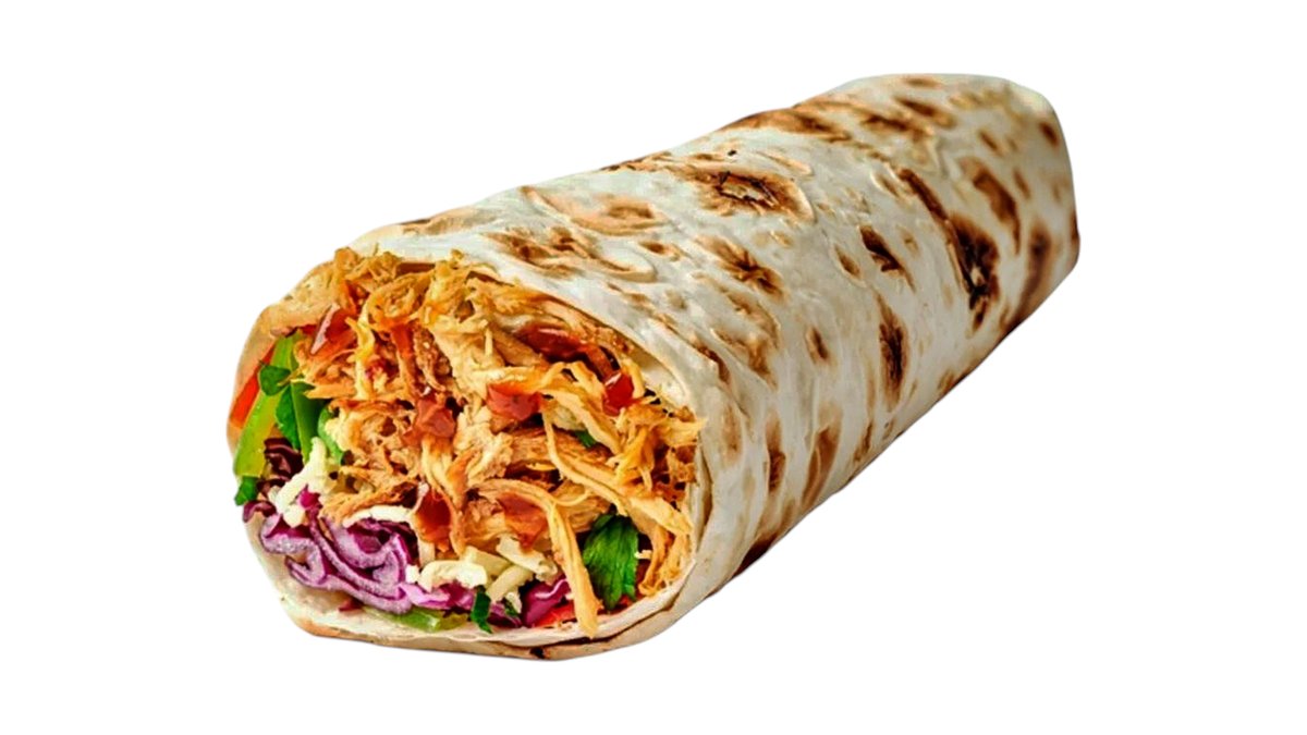 Печено пиле в хляб лаваш, червено зеле, магданоз и барбекю сос 200г