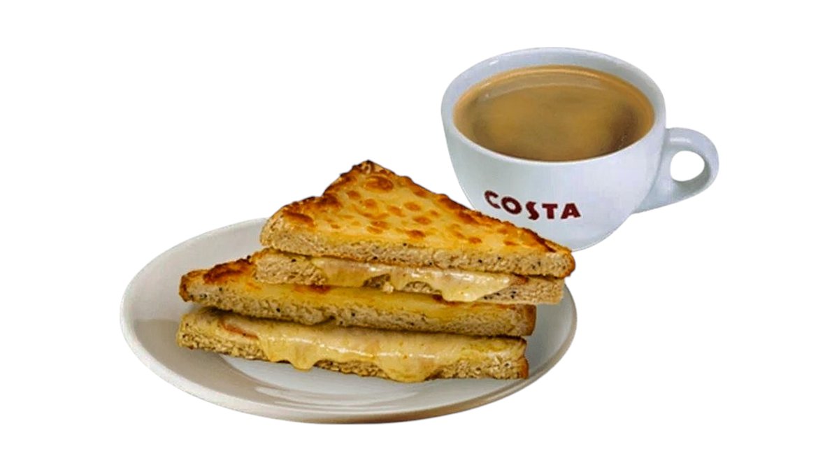 Тост шунка и кашкавал в комбинация с кафе Лате или Американо в Primo размер