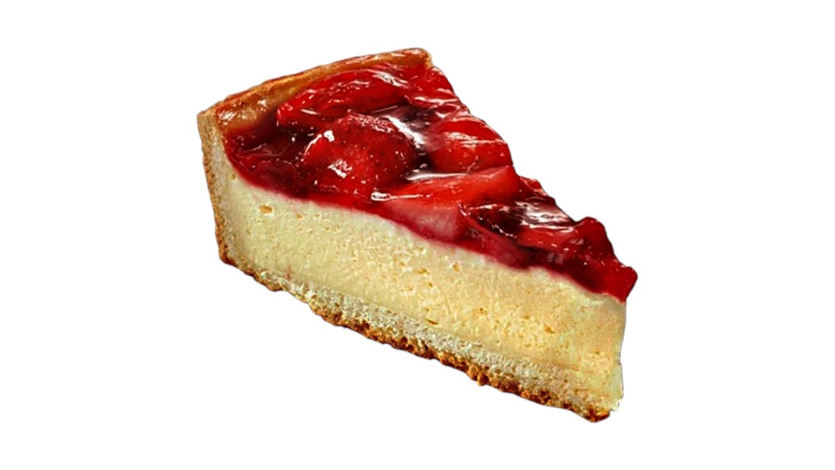 Нашият емблематичен чийзкейк, богато декориран с ягодови половинки 180г