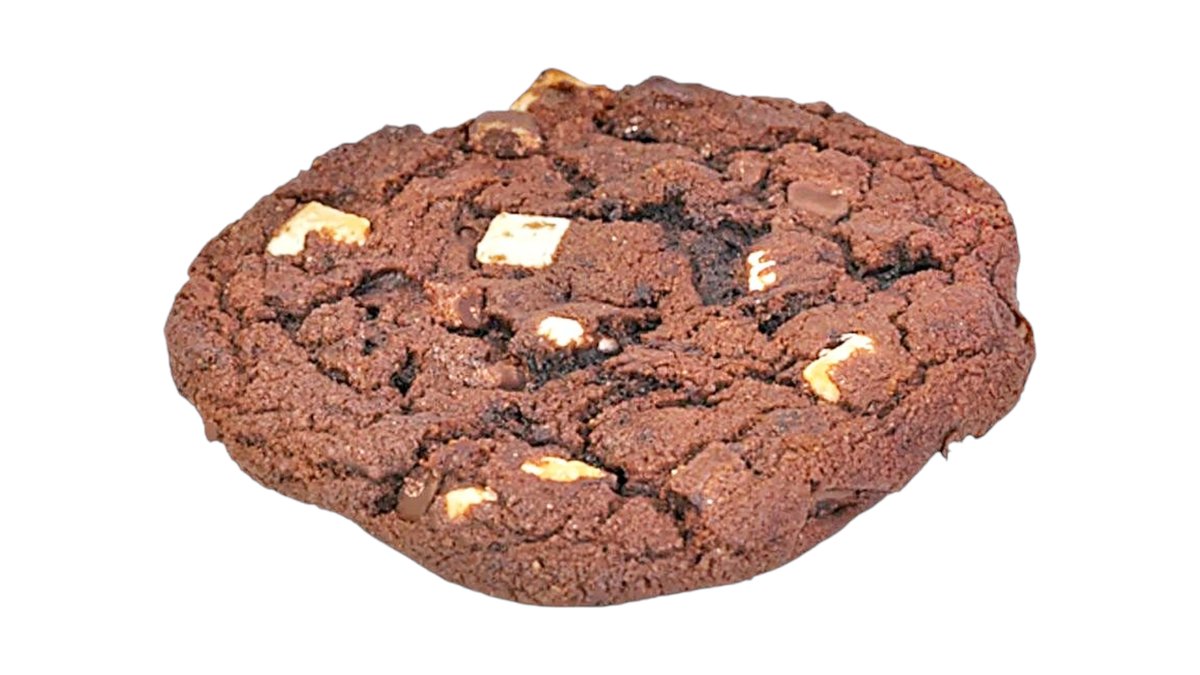 Изпечена на място шоколадова бисквита с парченца тъмен и бял шоколад 80г