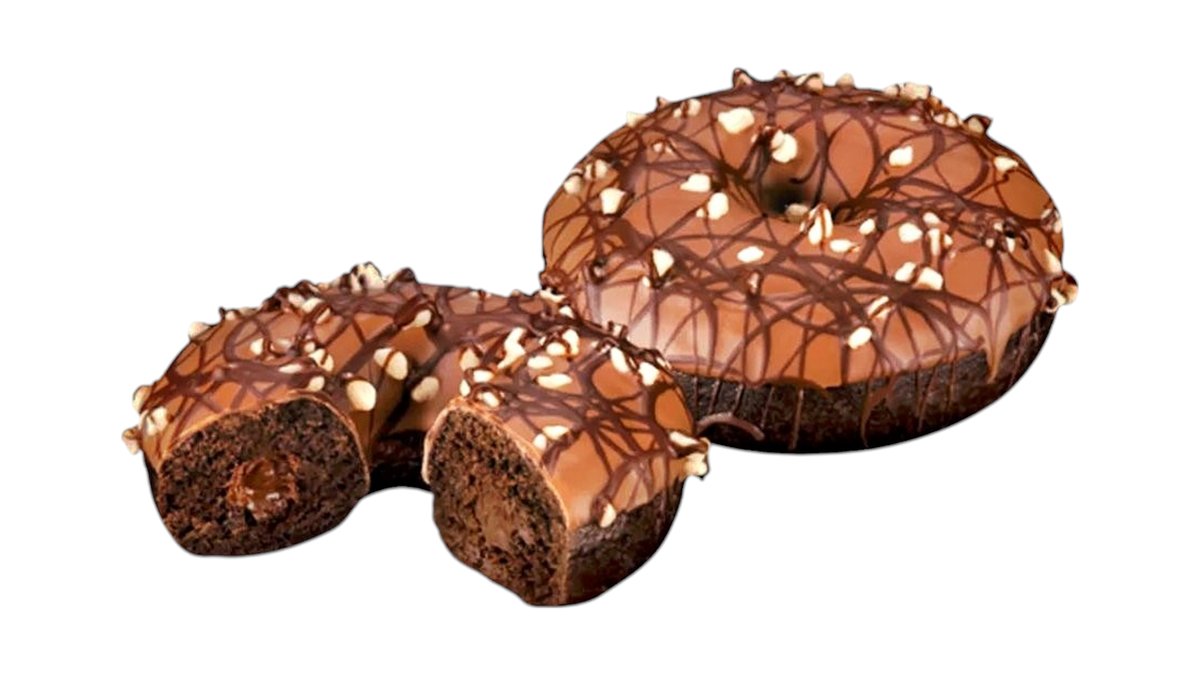 Шоколадов донат, с пълнеж млечен какаов крем и глазура млечен и бял шоколад 72г