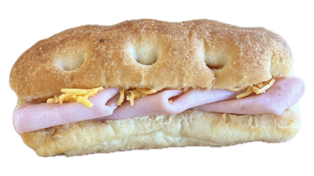 Италианско хлебче Романа с кремообразен горчичен сос с кисели краставички, настърган чедър и шунка 230г