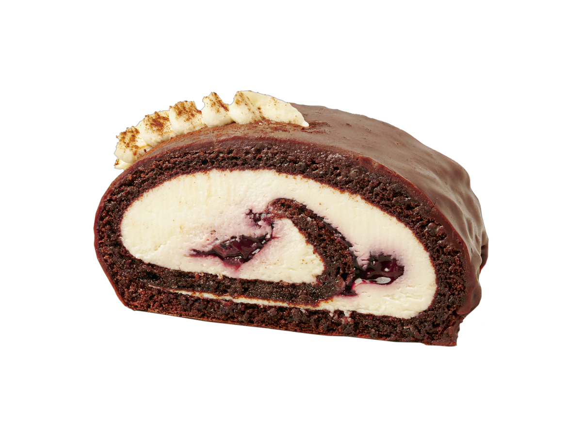 Очарователна комбинация от два класически десерта: швейцарско руло и десерт Блек Форест. Пухкав шоколадов блат, навит с богат млечен крем и череши, след което е покрит с шоколадов ганаш за елегантен завършек. 130г