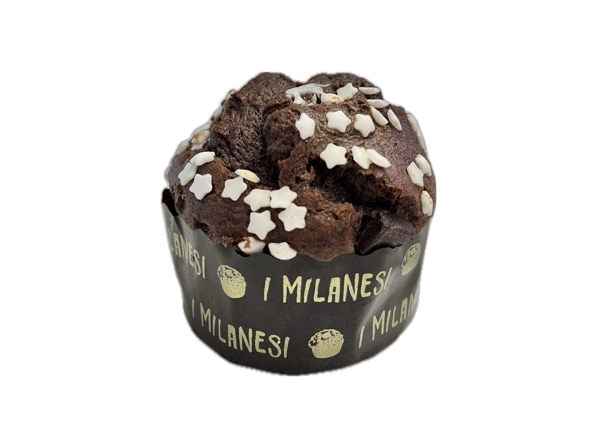 Мини шоколадово панетоне с пълнеж от бял шоколад и декорирано със звезди. 105г