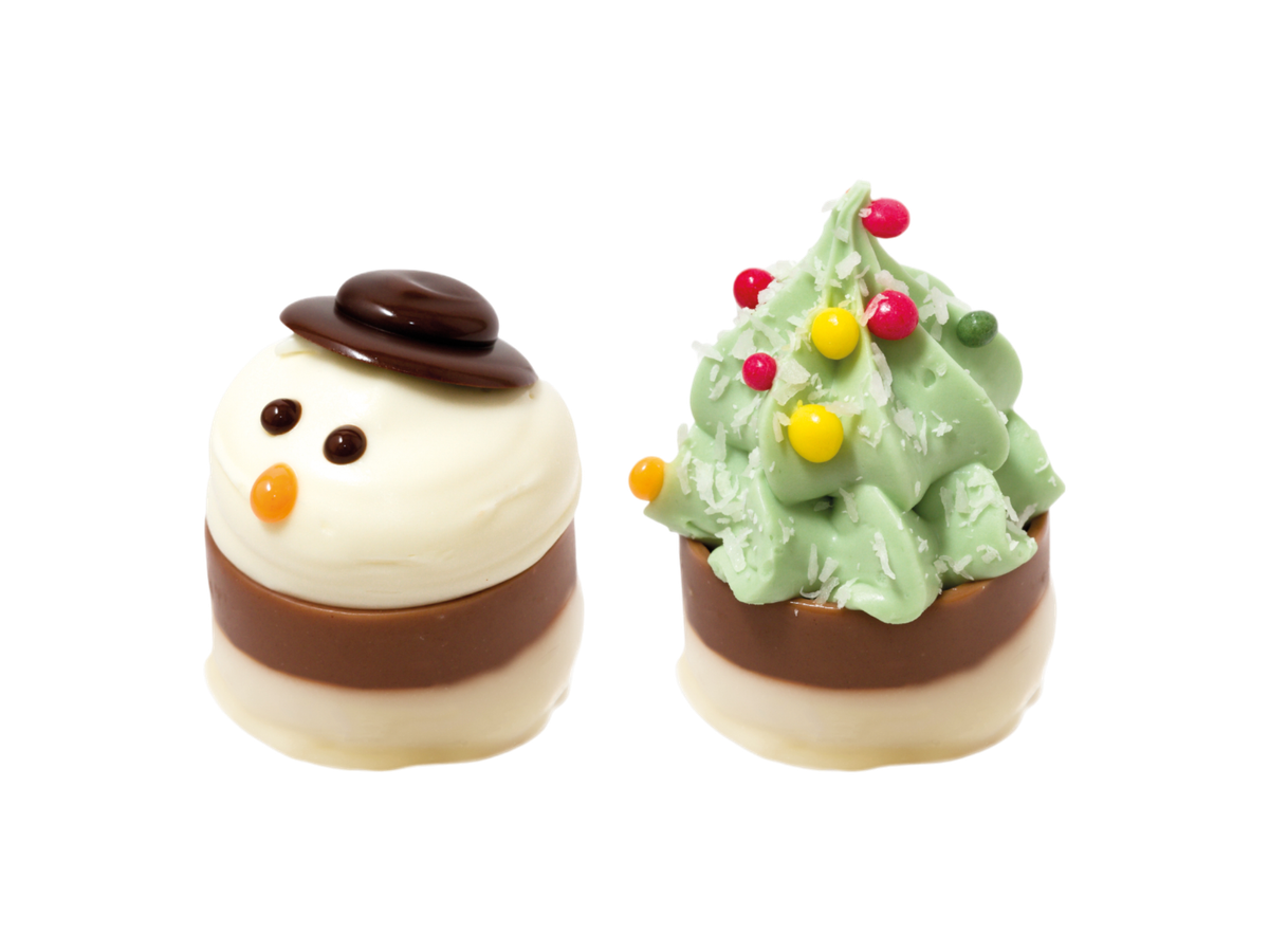Мини къпкейк от декориран млечен шоколад с пълнеж от бадемов пралин и крем бял шоколад. 22г