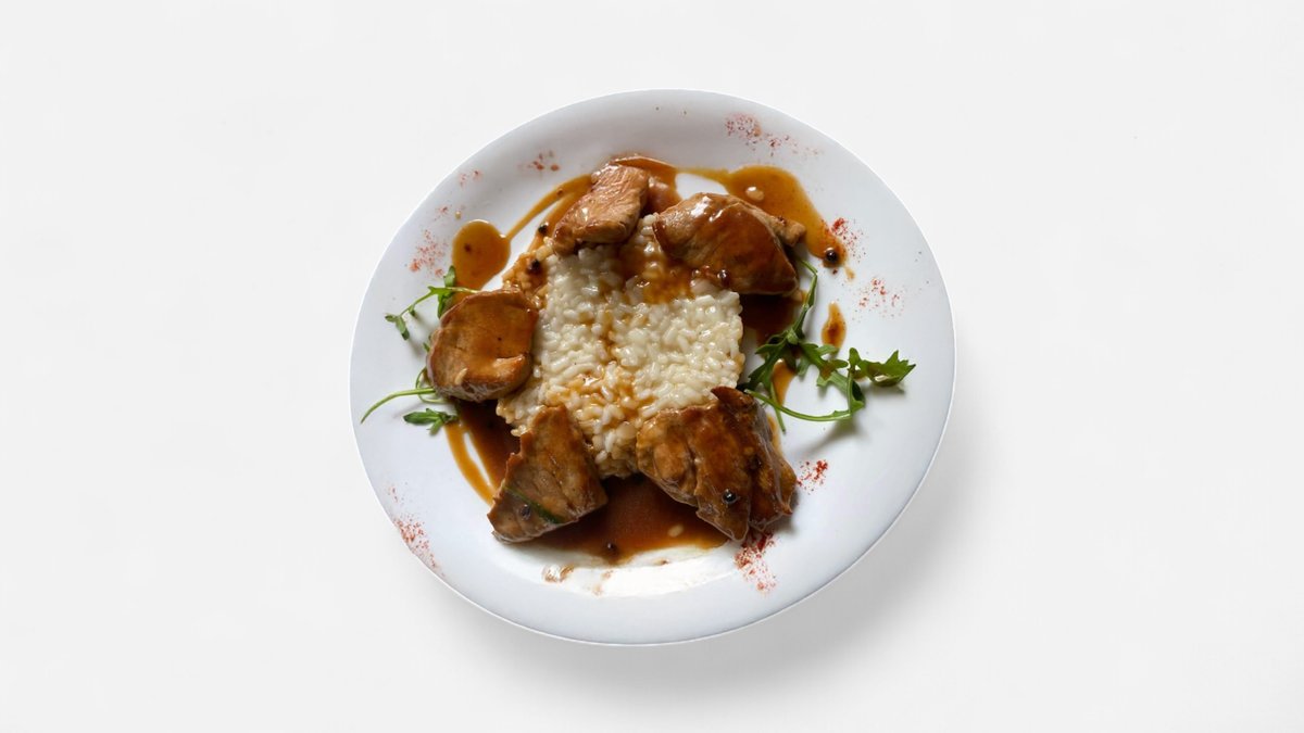 ориз арборио, пилешко филе, сушени домати, сметана, пармезан 400г