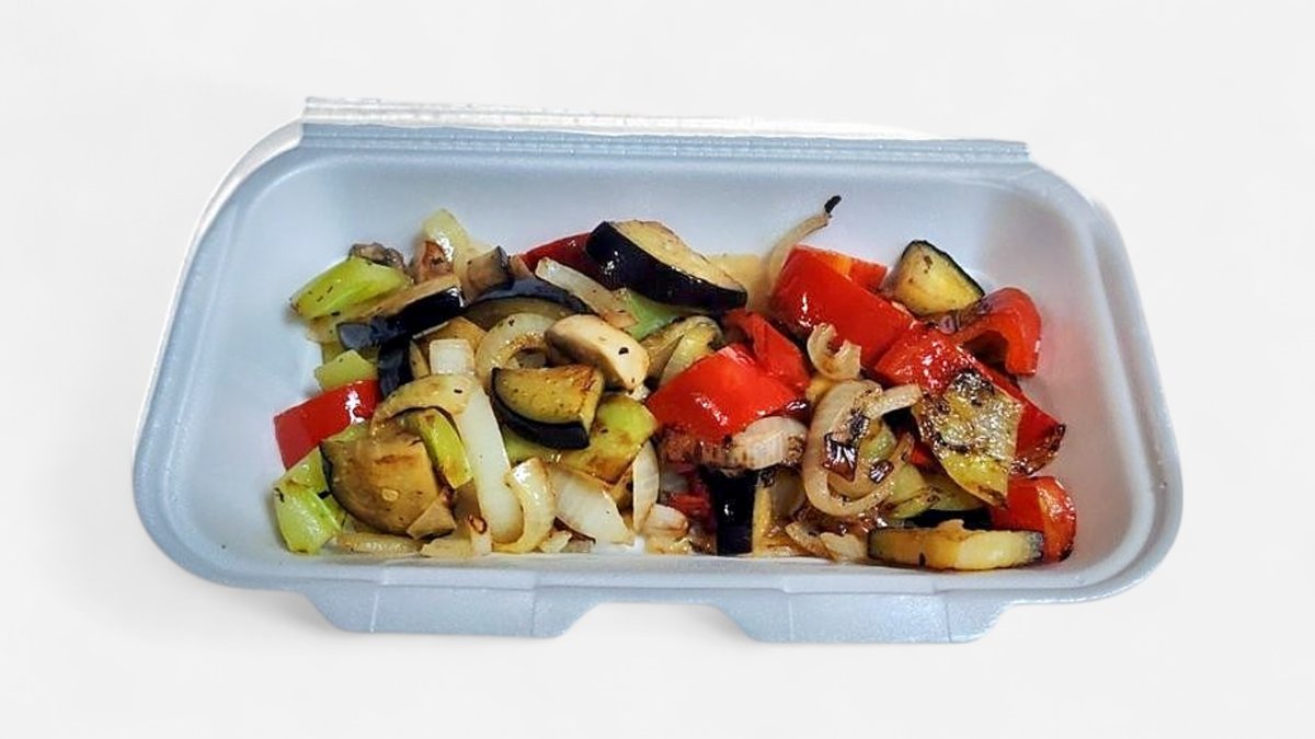 домати, краставици, чушки, лук, гъби, шунка, яйце, кашкавал, сирене, маслини, магданоз 350г
