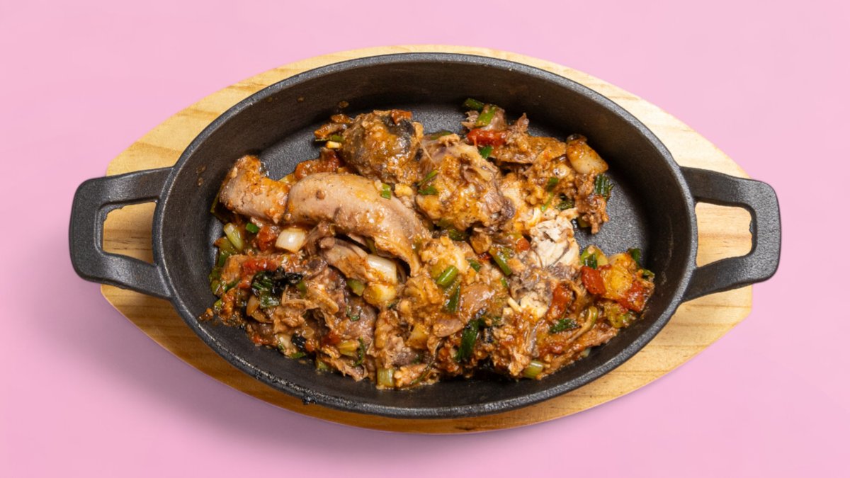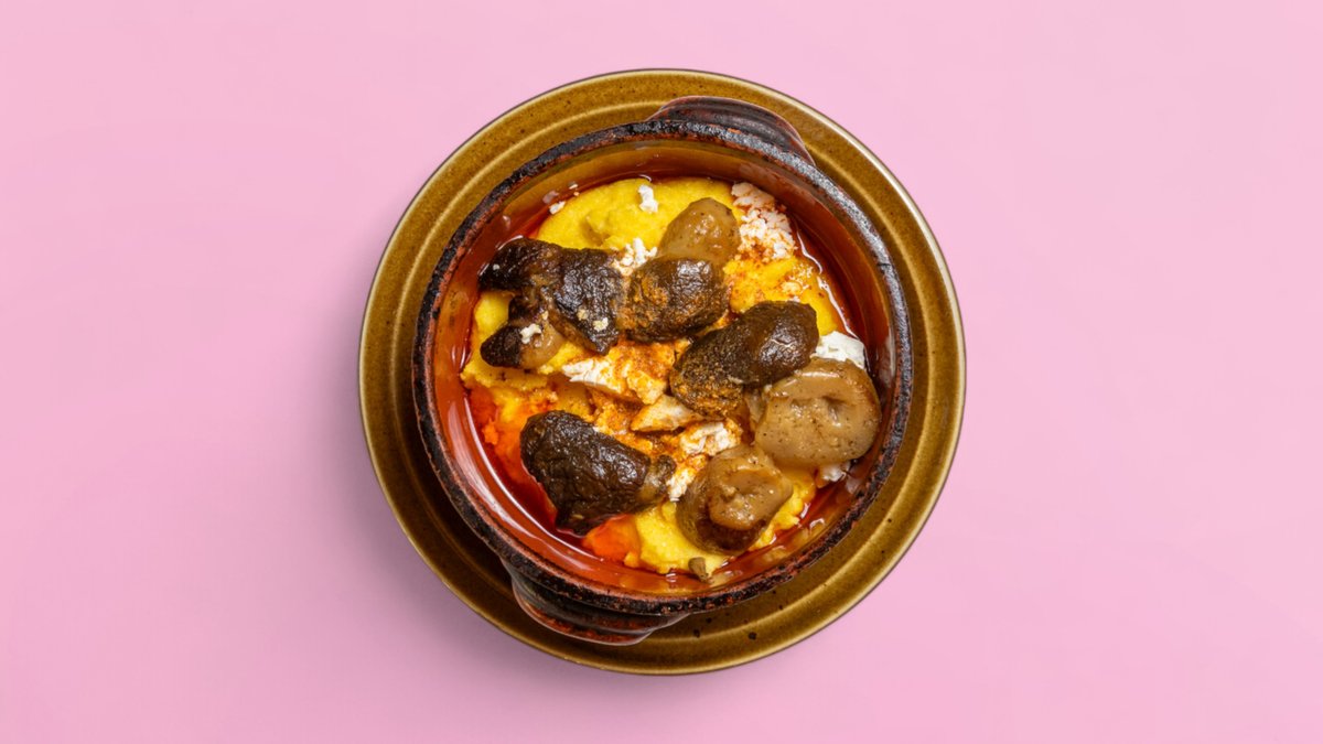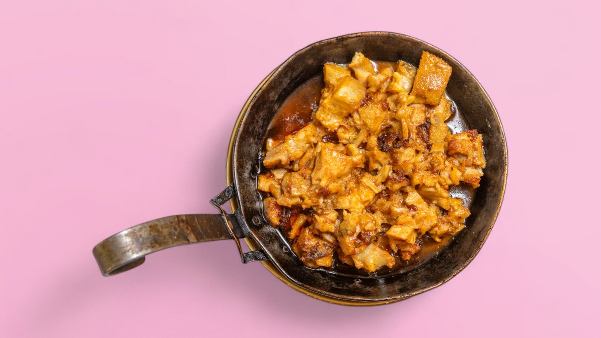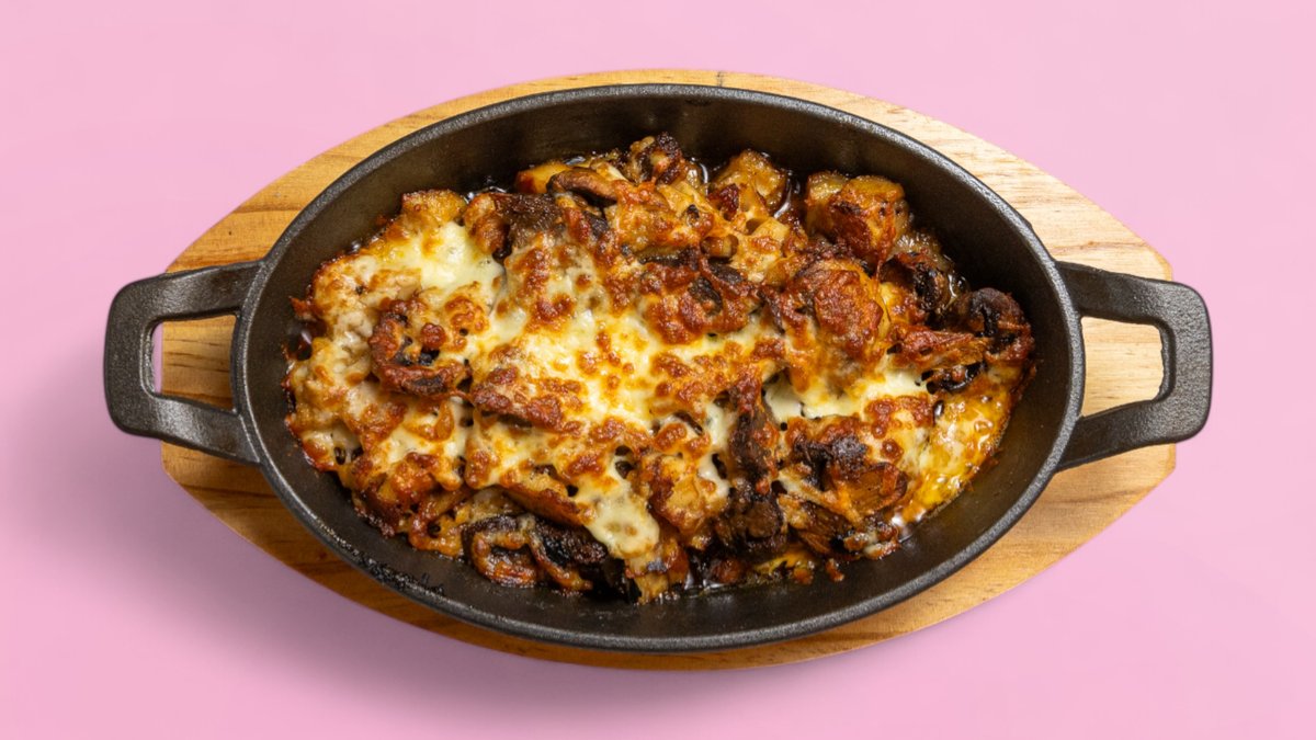 свински врат, гъби, лук, чушка, домати, кашкавал 350г