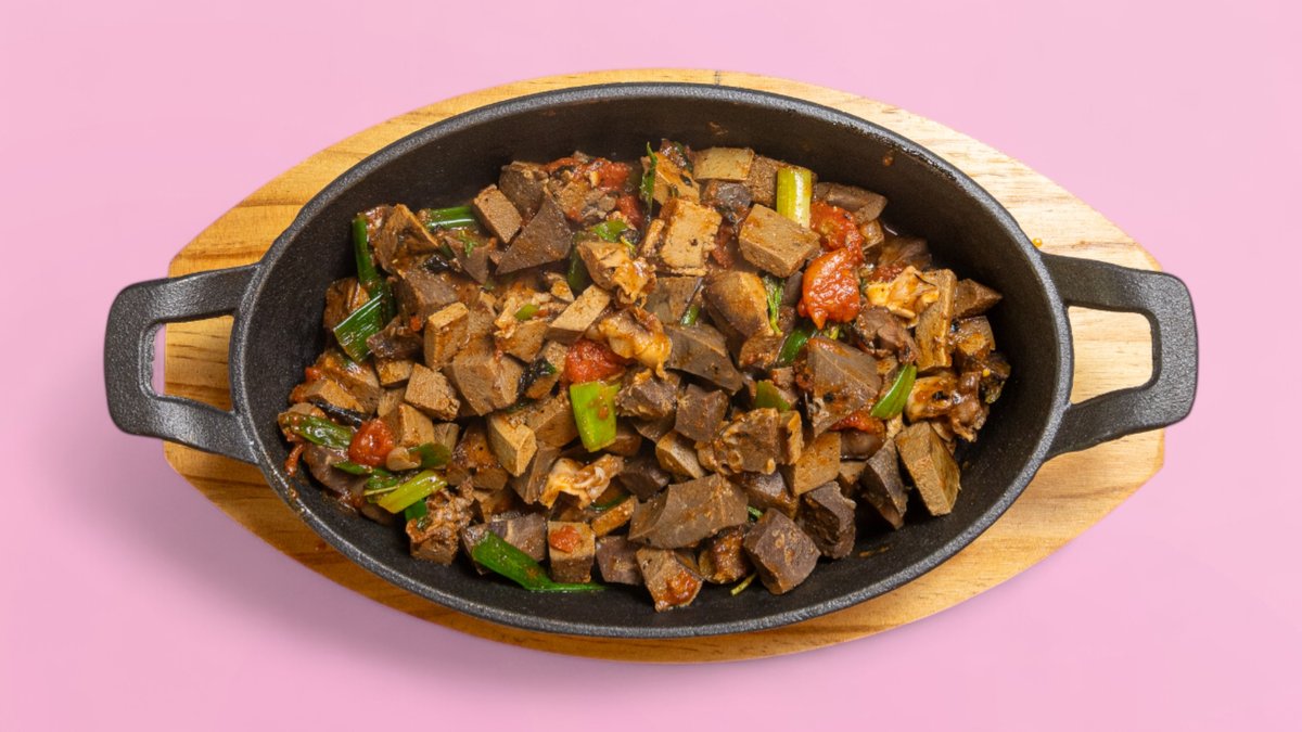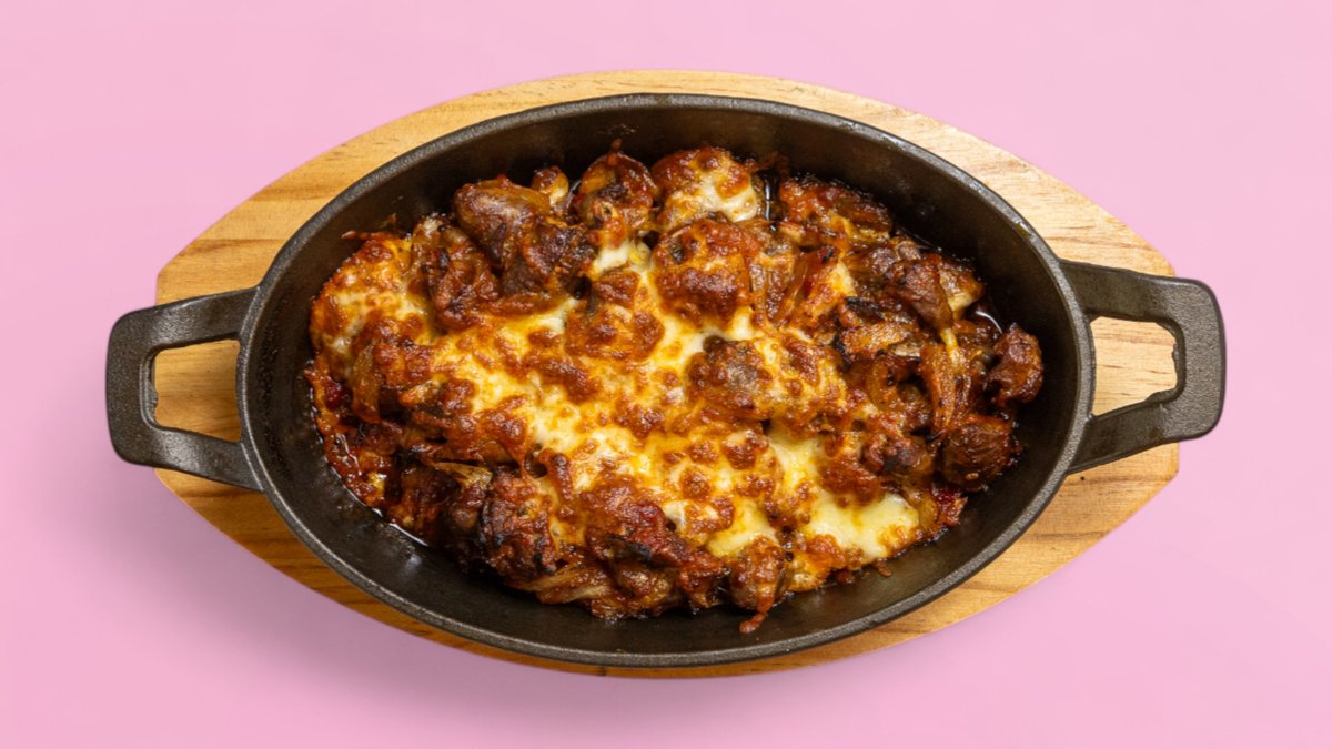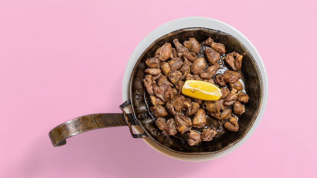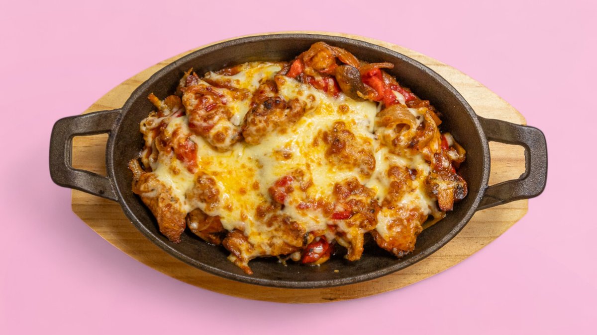 пилешки сърца, пилешки дробчета, лук, домат, гъби, кашкавал 350г